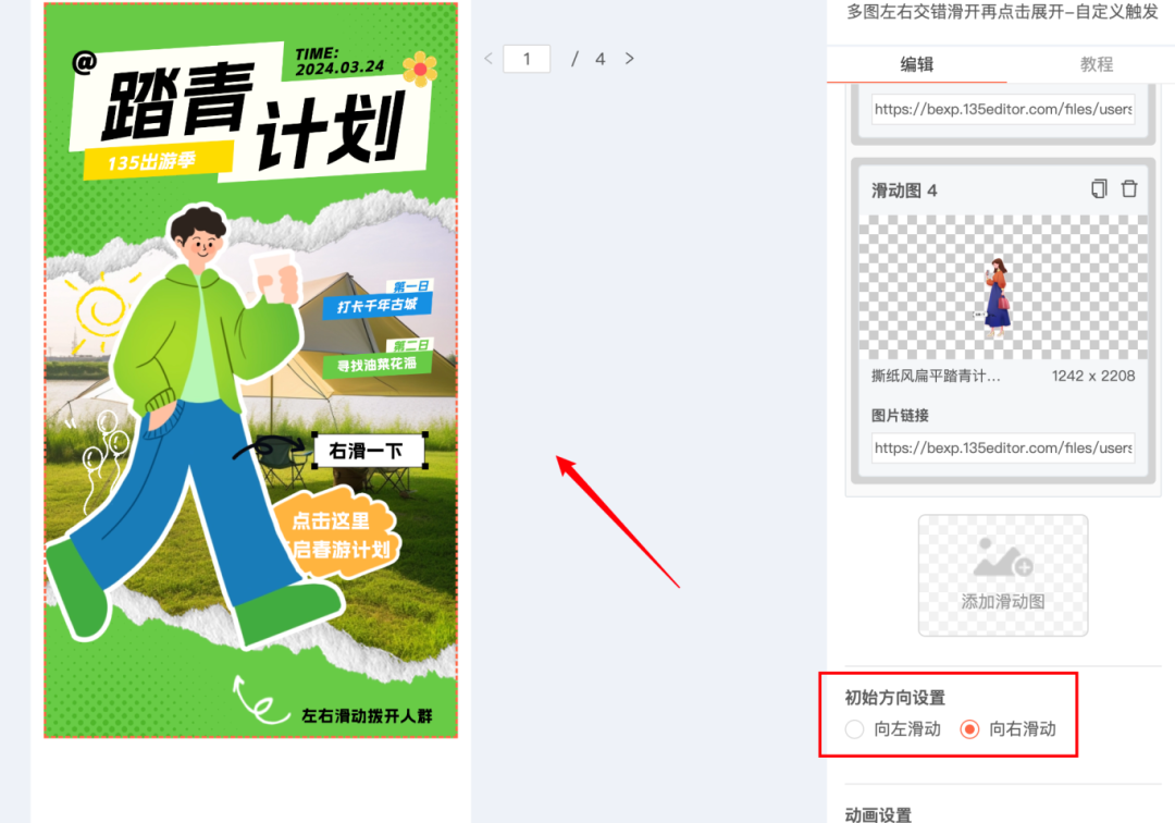 該組件的滑動(dòng)方向的順序是按照左右或者右左依次交替變化的,所以在【滑動(dòng)初始方向位置】的選擇上需要根據(jù)你第一個(gè)想要滑動(dòng)的元素方向?yàn)闇?zhǔn)。