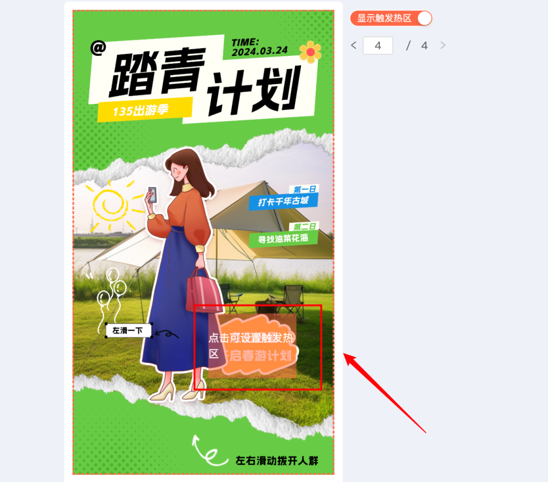 將所有滑動(dòng)圖放好后,就可以給底圖設(shè)置觸發(fā)點(diǎn)擊展開的區(qū)域,拖拽紅色部分即可。