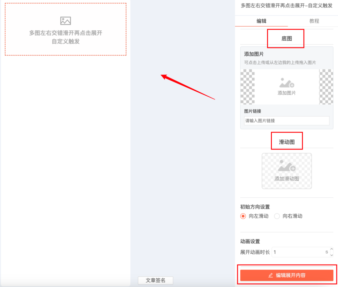 展開后的內(nèi)容編輯,就可以根據(jù)你自己的需要來進(jìn)行自由搭配,可以放無縫圖或者輪播、滑動(dòng)SVG,跟編輯普通的點(diǎn)擊展開效果做法類似。