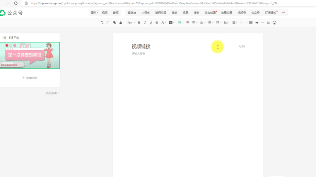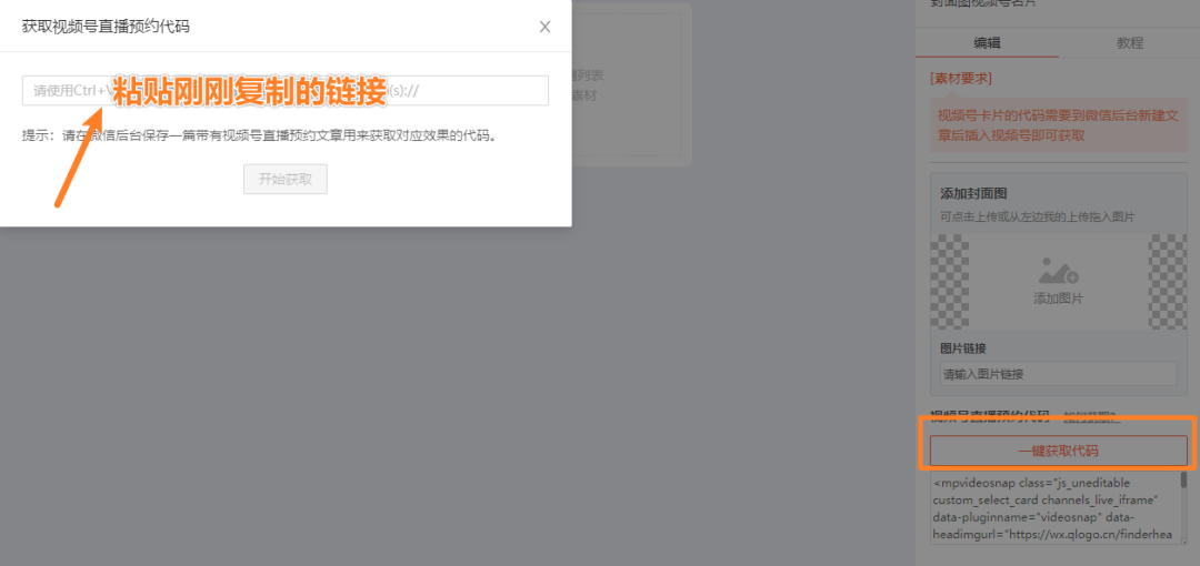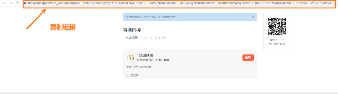 在公眾號后臺,插入視頻號直播預約卡片,保存點擊標題復制鏈接即可。