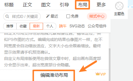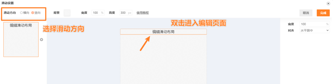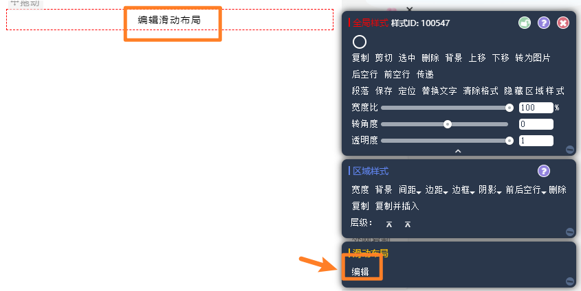選中「編輯滑動布局」出現(xiàn)紅色虛線框后,選擇編輯