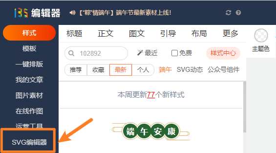 如使用導出代碼功能,則需根據(jù)SVG效果的使用平臺(135編輯器/微信后臺),選擇對應平臺的代碼進行復制,盡量不要直接粘貼代碼,以免效果有誤。