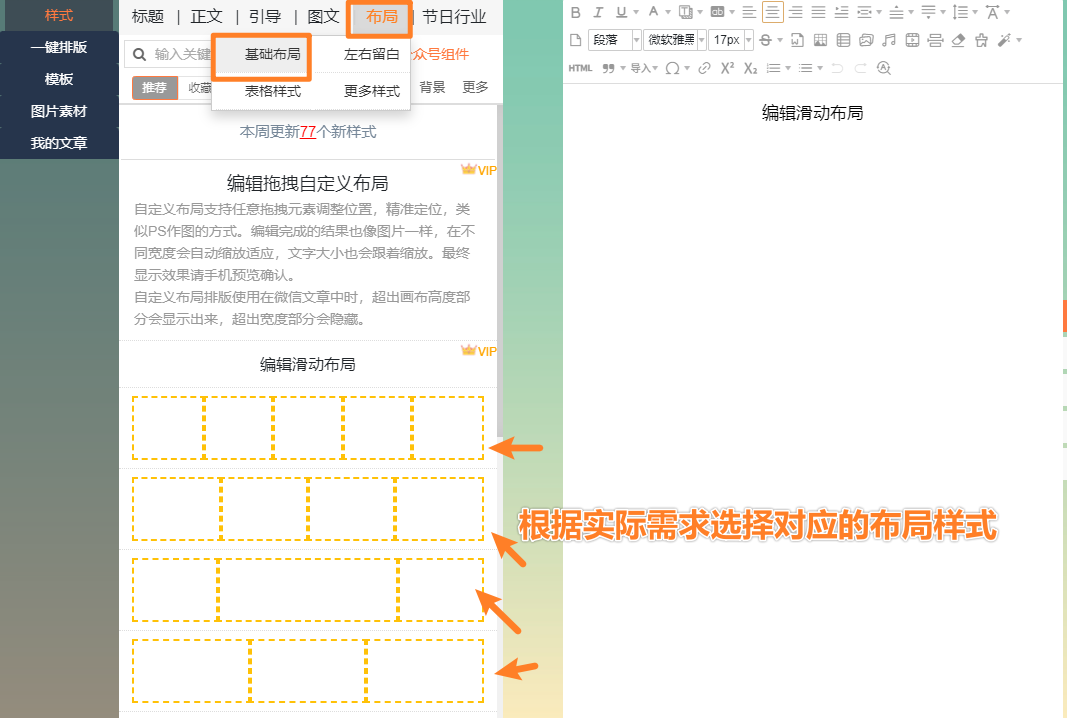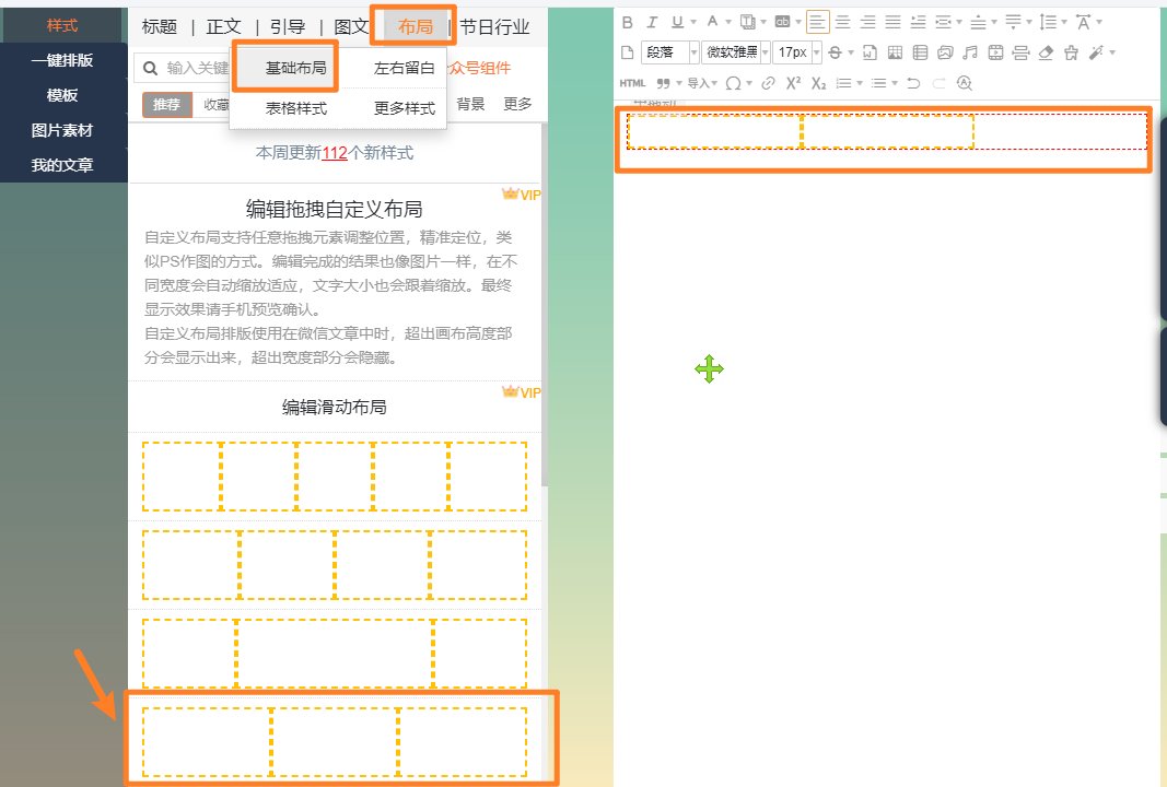 進入編輯頁面后,選擇「布局」??「基礎布局」