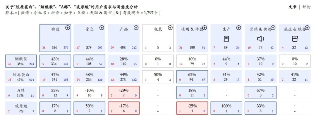 從社交平臺(tái)中找到消費(fèi)者最看重并且最認(rèn)可的方向要論卷,美妝護(hù)膚大概當(dāng)屬快消品類里的卷王了。畢竟消費(fèi)者對(duì)于護(hù)膚品的需求日漸升級(jí),品牌若始終以簡單基礎(chǔ)的保濕補(bǔ)水示人,很快就會(huì)被市場淘汰。隨著消費(fèi)者認(rèn)知水平的不斷提高,品牌的宣傳也不能僅僅流于表面,而是需要秀出真刀真槍——例如用了什么成分、用了什么技術(shù)、科研成果是否屬于國際領(lǐng)先水平等等。從五年前的玻尿酸開始,陸續(xù)流行起膠原蛋白、煙酰胺、早C晚A、玻色因、二裂酵母、油橄欖,如今,消費(fèi)者不僅要看成分,更要知道這些成分如何對(duì)皮膚產(chǎn)生功效。我們觀察到,抓住消費(fèi)者這一動(dòng)機(jī)和預(yù)期并實(shí)現(xiàn)增長的品牌里,可復(fù)美算一個(gè)。據(jù)上海證券研報(bào)顯示,可復(fù)美所在的巨子生物,是我國首家獲重組膠原蛋白產(chǎn)品醫(yī)療器械注冊及實(shí)現(xiàn)重組膠原蛋白與五種高純度稀有人參皂苷量產(chǎn)的公司。自2019年起,巨子生物連續(xù)3年是中國最大的膠原蛋白專業(yè)皮膚護(hù)理產(chǎn)品公司,并且是全球首家實(shí)現(xiàn)量產(chǎn)重組膠原蛋白護(hù)膚產(chǎn)品的公司。我們對(duì)比了幾款消費(fèi)者最常關(guān)注的成分:膠原蛋白、煙酰胺、A醇、玻色因,發(fā)現(xiàn)了膠原蛋白的整體凈推薦值最高。這充分說明,可復(fù)美的技術(shù)踩中了消費(fèi)者的心巴。擁有較強(qiáng)底層技術(shù)優(yōu)勢的可復(fù)美,在用戶洞察中還發(fā)現(xiàn),消費(fèi)者對(duì)于成分背后的技術(shù)有著強(qiáng)烈的好奇,且對(duì)這些技術(shù)的了解有可能直接影響著他們的消費(fèi)決策。從小紅書的流量趨勢來看,消費(fèi)者對(duì)科研、論文等論據(jù)更感興趣,反映在產(chǎn)品ROI、品牌美譽(yù)度、帖子流量等指標(biāo)數(shù)據(jù)要更好。因此,可復(fù)美圍繞其核心技術(shù)“重組膠原蛋白”展開了一系列內(nèi)容營銷。今年5月份,新世相和美one聯(lián)合推出一檔《成分中國》系列短片,將可復(fù)美研發(fā)重組膠原蛋白的過程,拍成了關(guān)注護(hù)膚國牌突破研發(fā)和供應(yīng)鏈壟斷的科學(xué)故事,把品牌的故事上升成全民共情的“解決核心技術(shù)卡脖子”的時(shí)代故事[5]。可復(fù)美今年重點(diǎn)推出的膠原棒,核心賣點(diǎn)是「C5HR重組膠原蛋白仿生組合」,其中還暗含了該核心技術(shù)迭代的storyline[6]——
