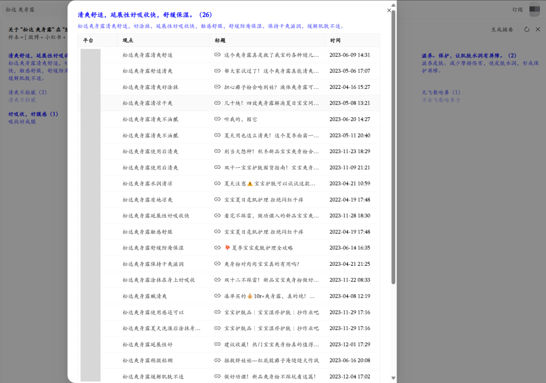 對(duì)于一個(gè)經(jīng)歷過周期的老品牌來說,積極革新自我至關(guān)重要,否則很容易在與后浪的競爭中被拍在沙灘上,潔爾陰正是抓住了用戶洞察這一關(guān)鍵點(diǎn),才成功實(shí)現(xiàn)了有效革新,提升了品牌的再現(xiàn)度,保住了自己行業(yè)龍頭的地位。我們認(rèn)為,潔爾陰的戰(zhàn)略很值得各行業(yè)的老品牌學(xué)習(xí)借鑒,在洞察用戶的戰(zhàn)術(shù)上,久謙中臺(tái)可以提供更加高效快捷的幫助,它可以快速收集相關(guān)的社媒內(nèi)容,并對(duì)其進(jìn)行分類和分析,能夠大大節(jié)省調(diào)研者的用工時(shí)間。