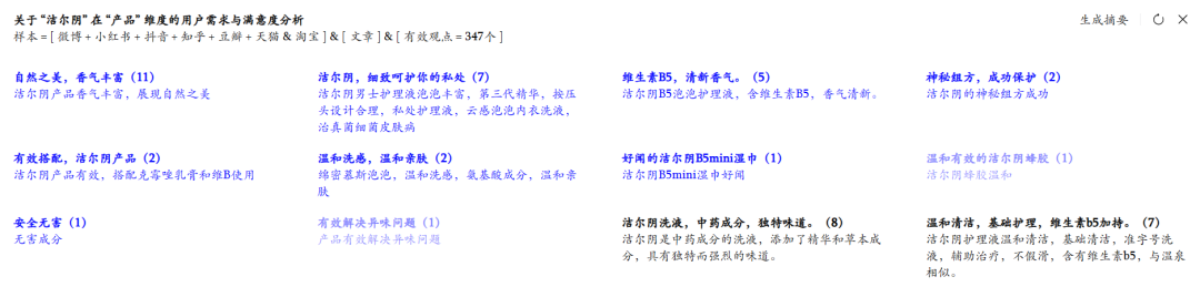 我們發(fā)現(xiàn),久謙中臺(tái)的用戶研究體系可以輔助用戶洞察的工作,它能夠快速匯總社媒平臺(tái)上的信息,按照關(guān)鍵詞將海量的信息進(jìn)行分類、整理和分析,大大提高了用戶洞察的效率,甚至可以幫助品牌提供靈感。