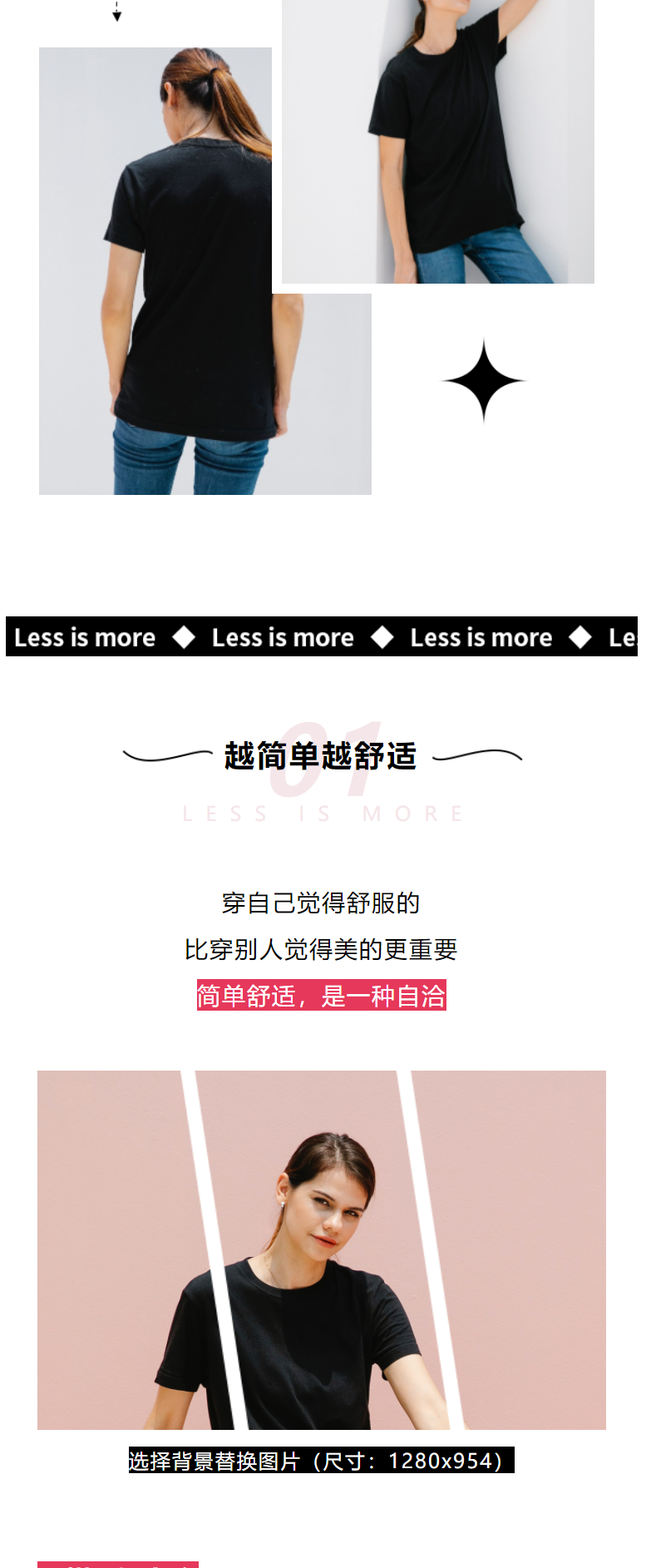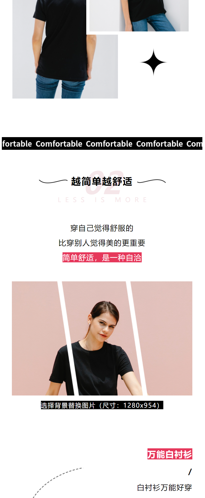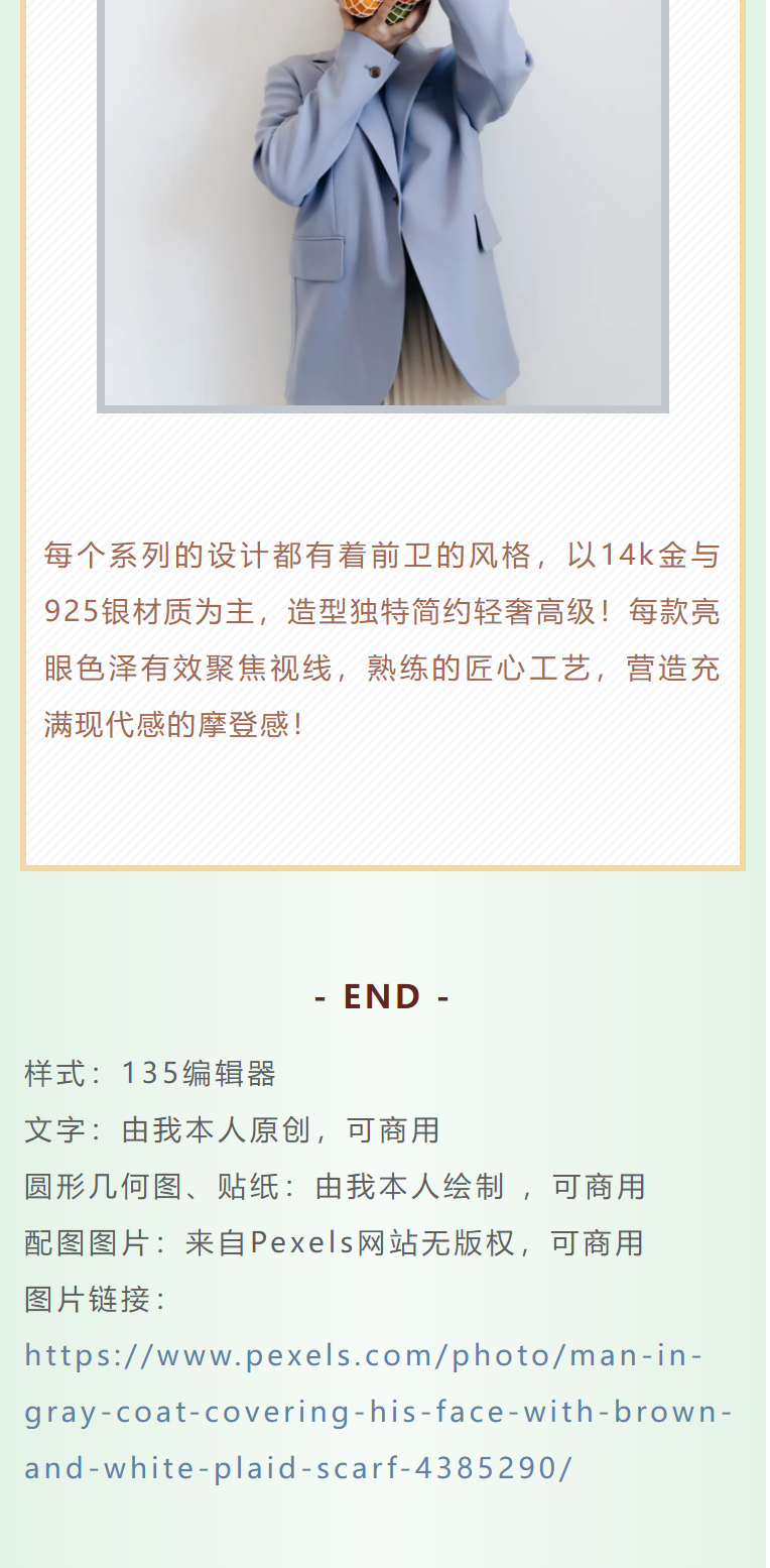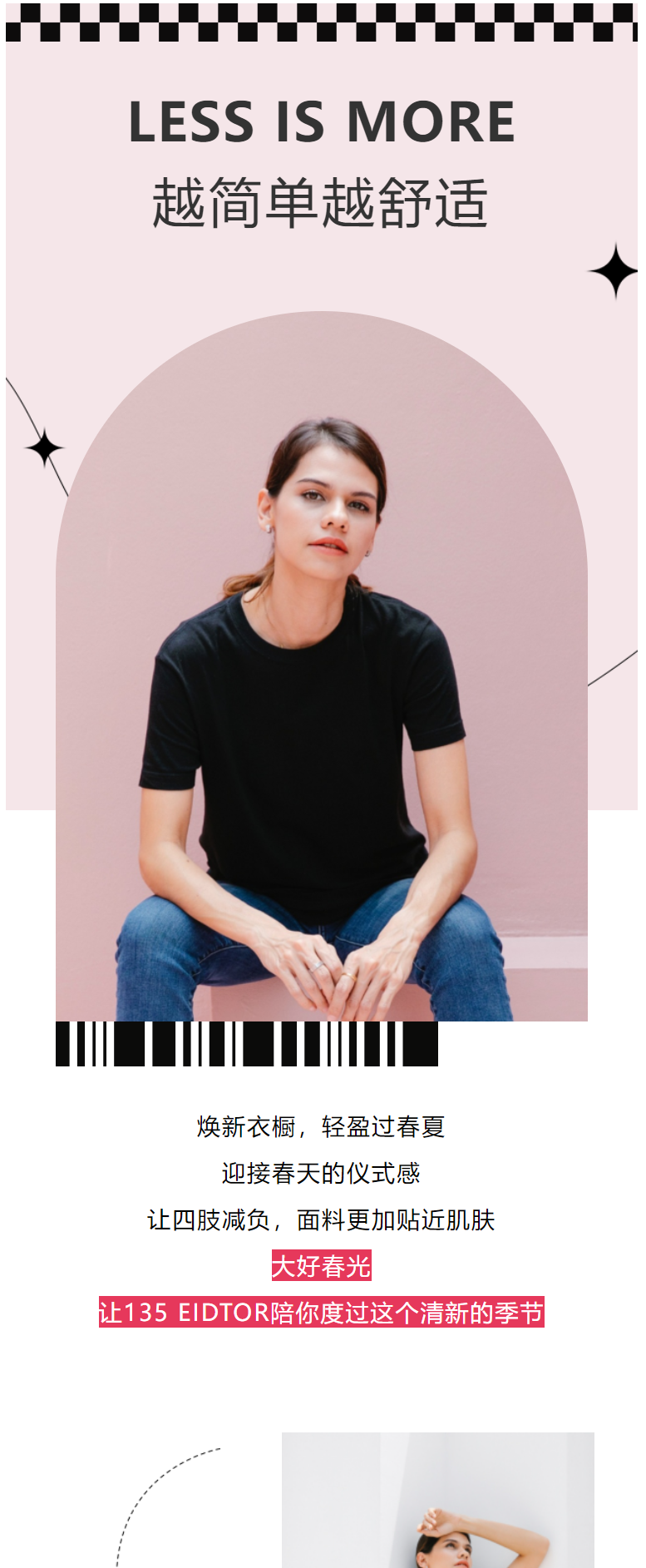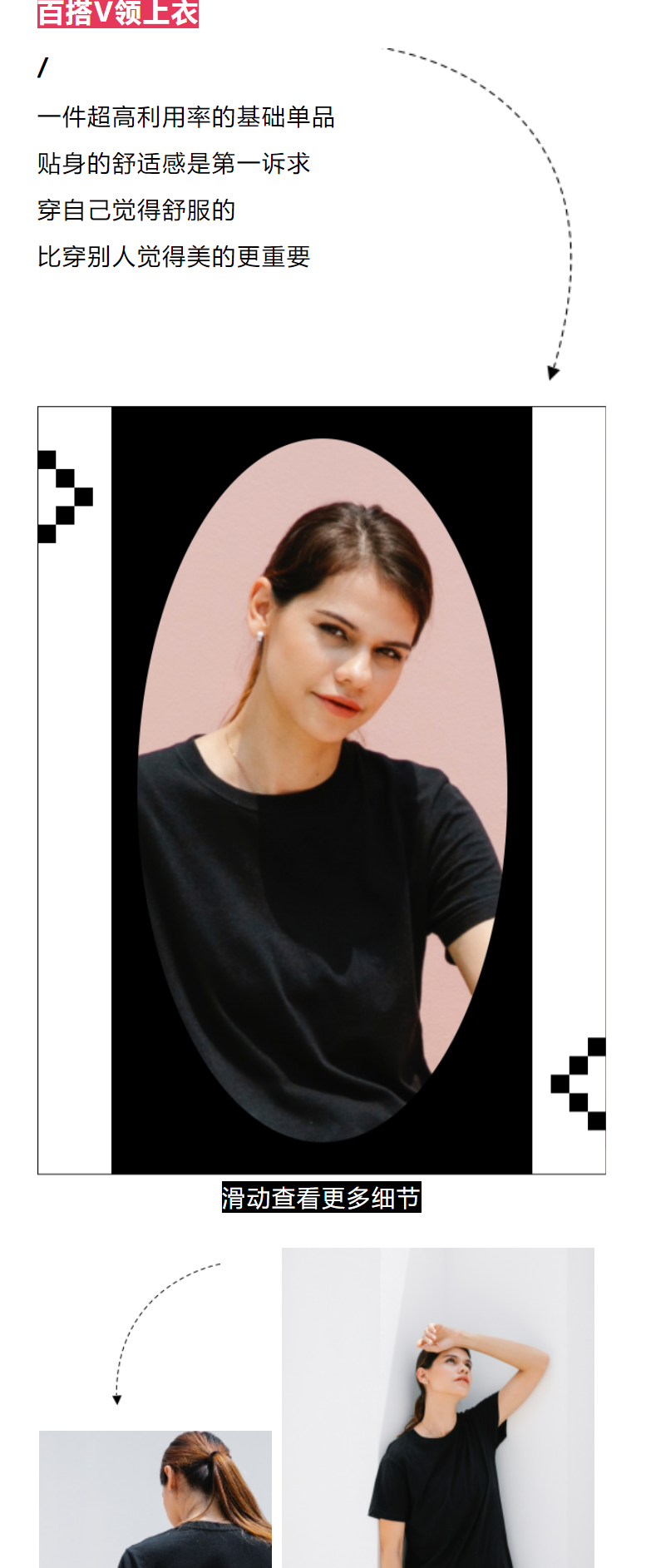 模板使用建議:ins風格的模板有簡單清新的感覺,適用范圍廣泛,化妝品、珠寶、服裝等一些時尚品類都可以采用ins風模板,來打造推文整體的氛圍感。