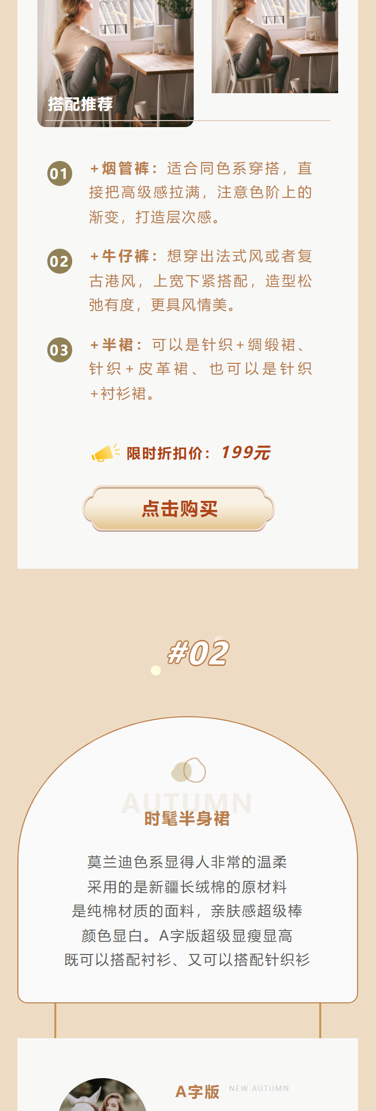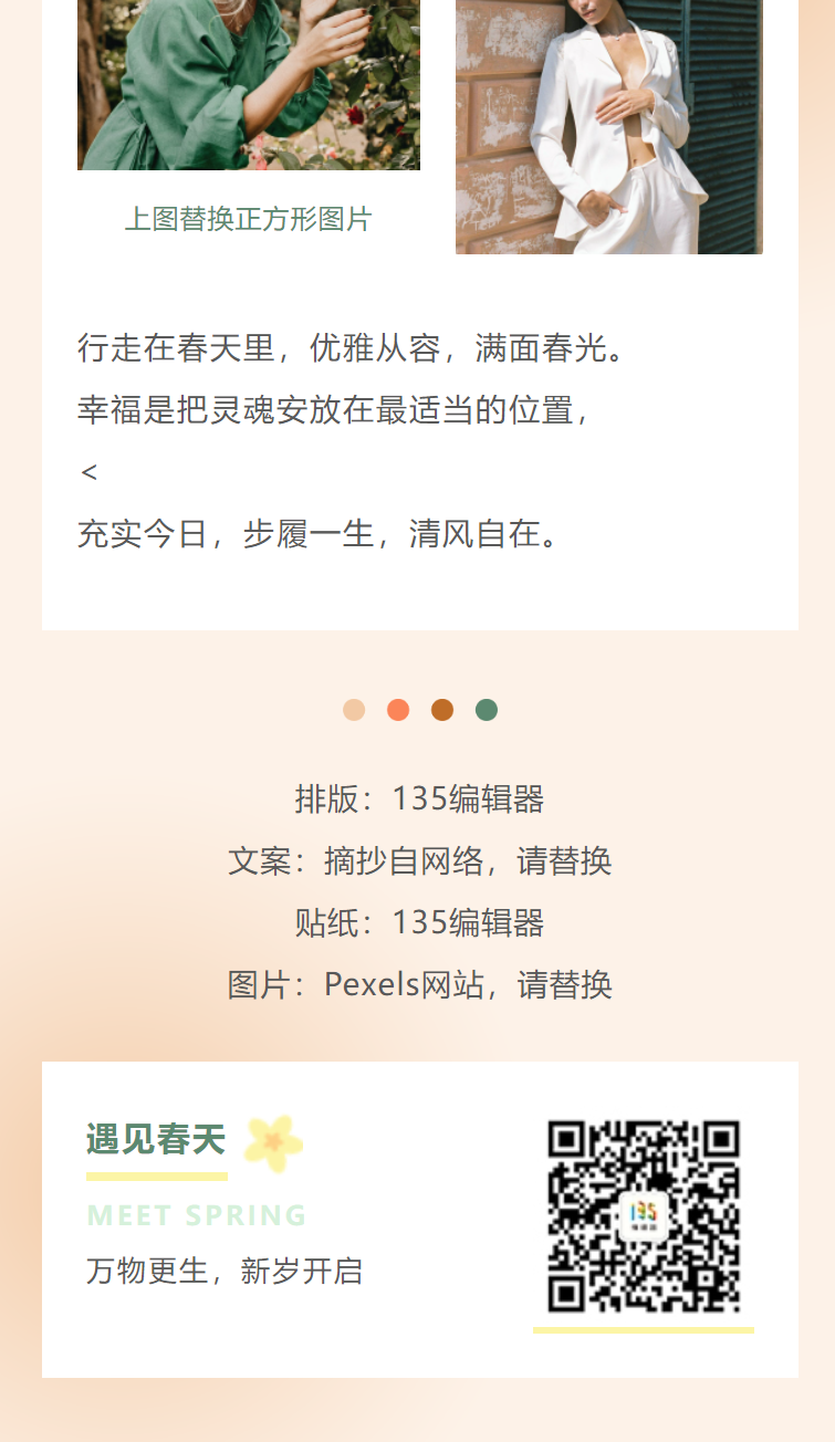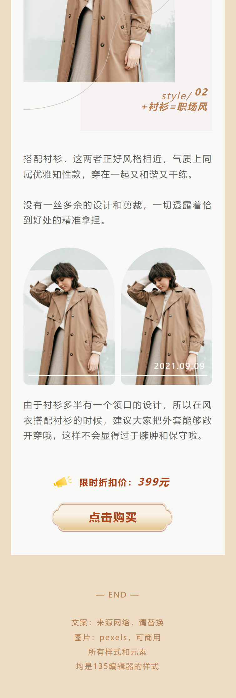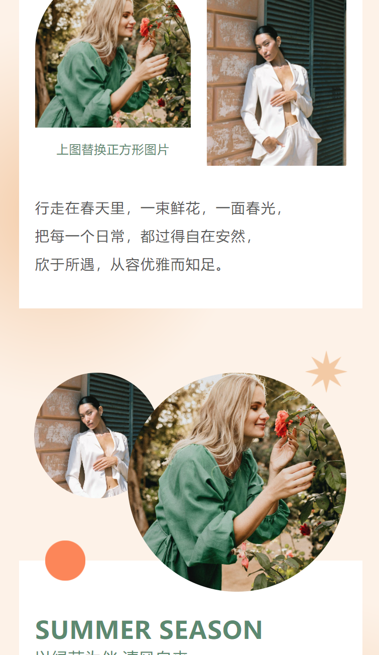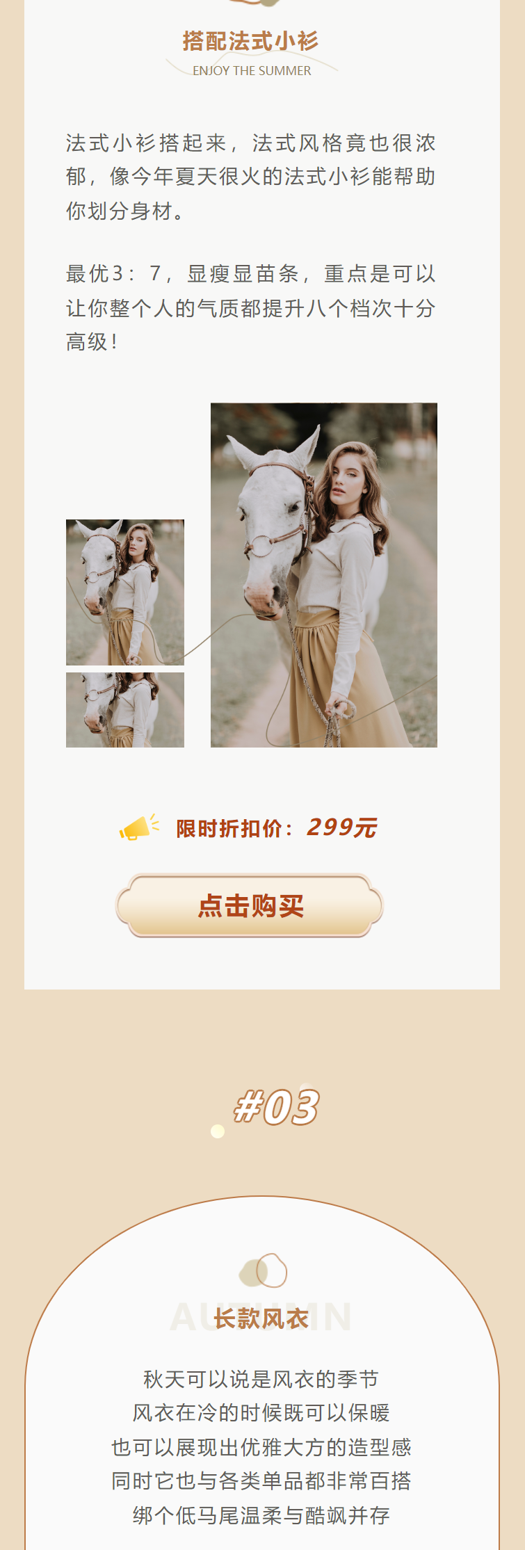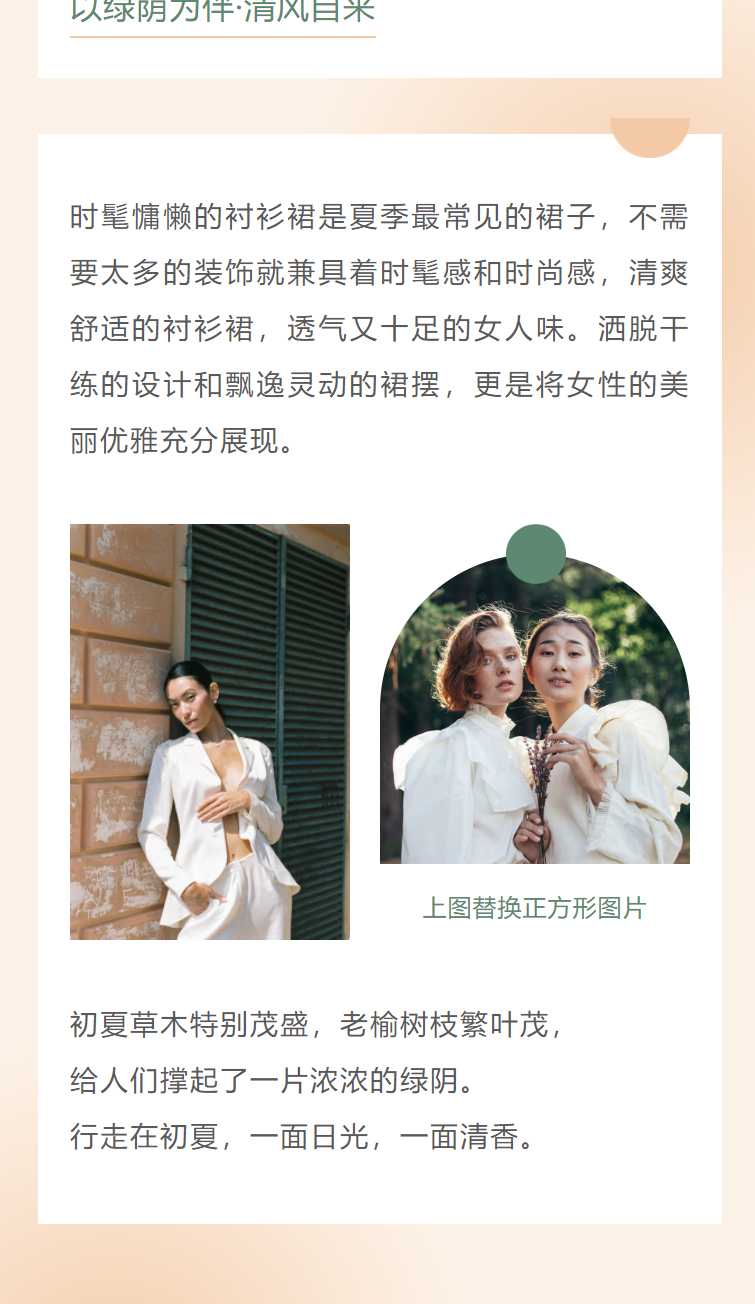 模板使用建議:ins風格的模板有簡單清新的感覺,適用范圍廣泛,化妝品、珠寶、服裝等一些時尚品類都可以采用ins風模板,來打造推文整體的氛圍感。