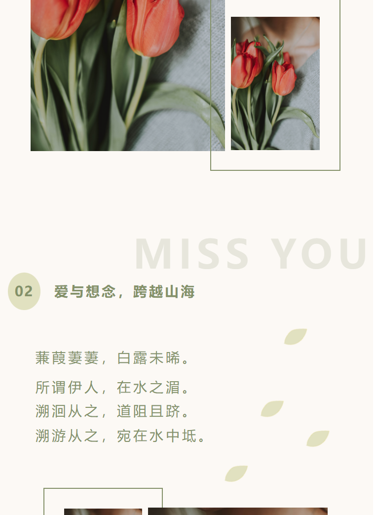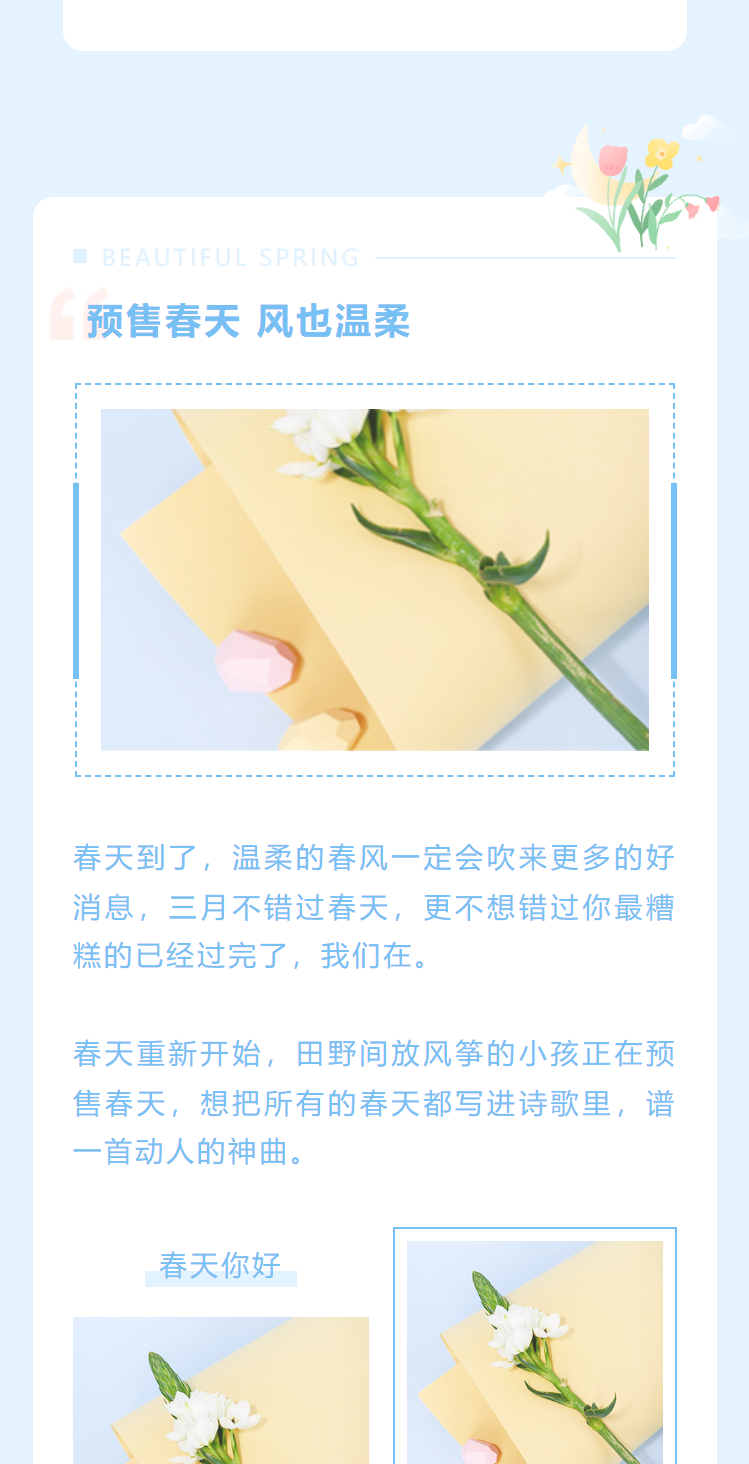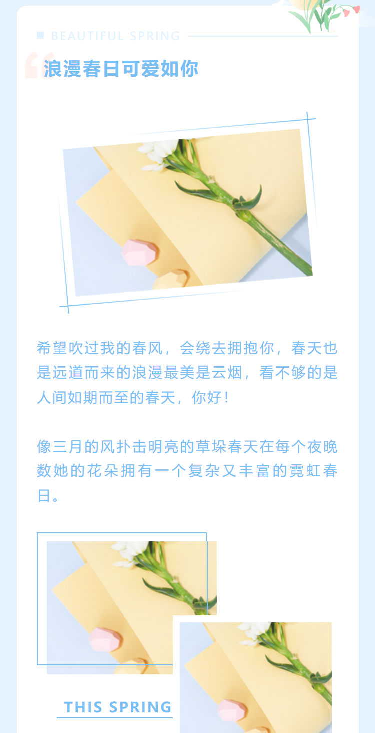 模板使用建議:這類風格的模板會運用一些插畫的圖片以及小元素,整體上會比較清新可愛,適用于化妝品、服裝、鮮花、寵物用品等行業(yè)。