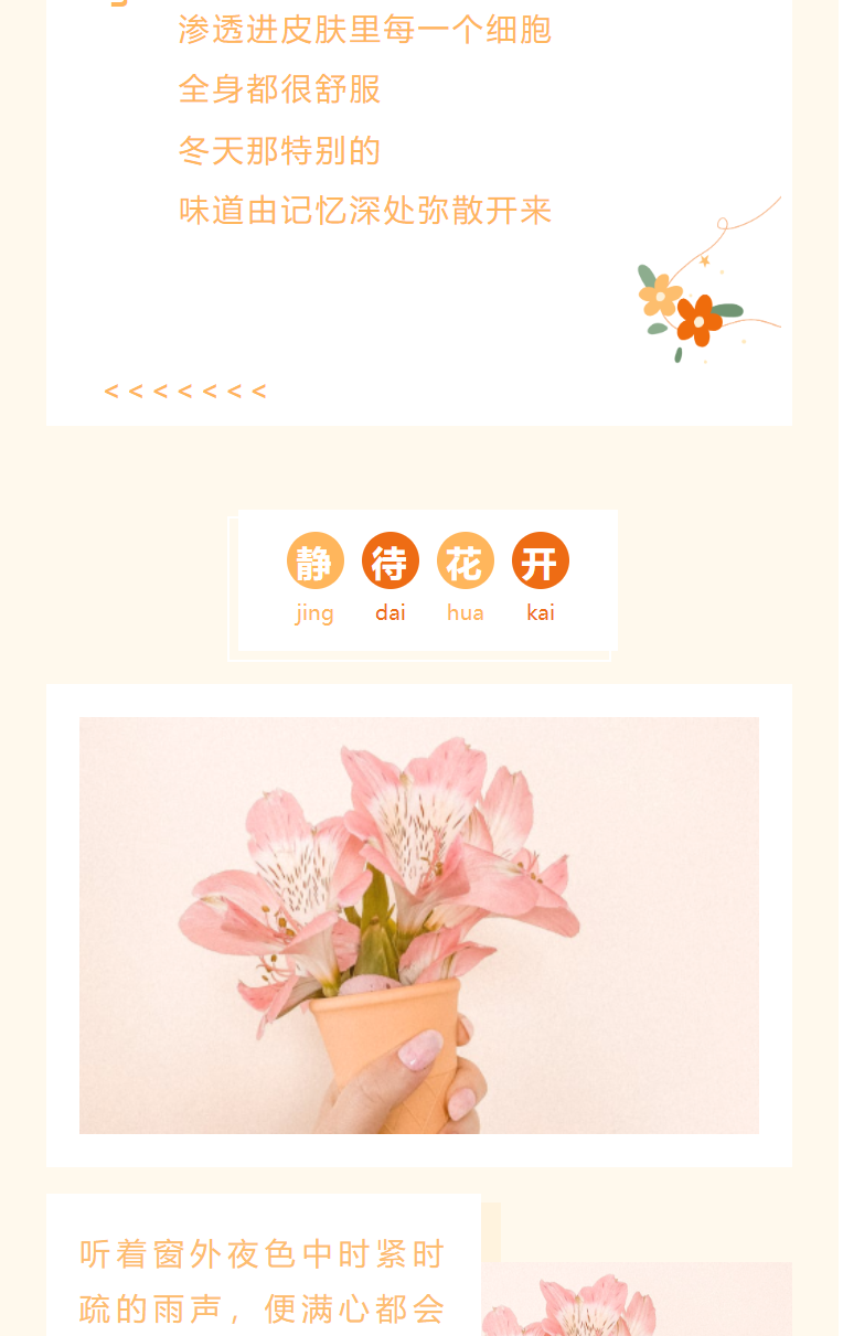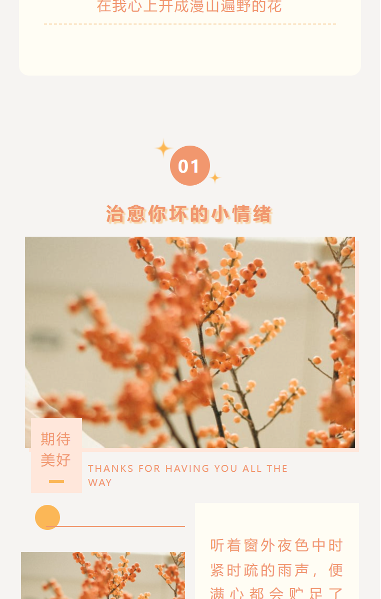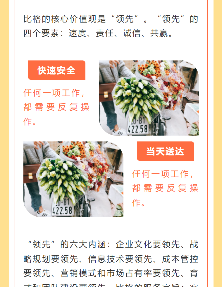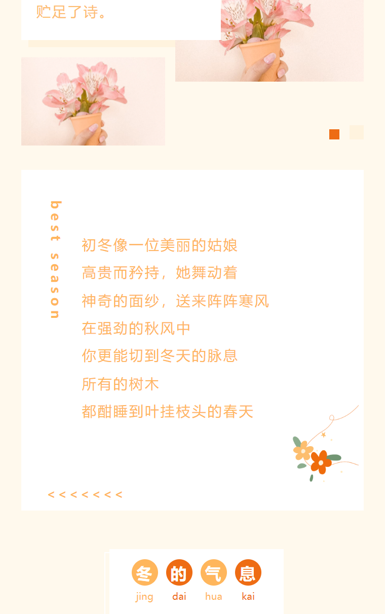 模板使用建議:這類風格的模板會運用一些插畫的圖片以及小元素,整體上會比較清新可愛,適用于化妝品、服裝、鮮花、寵物用品等行業(yè)。