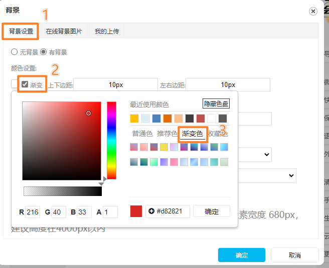 設(shè)置漸變色背景同樣在【背景設(shè)置】里面,但要記得勾選漸變旁邊的小框哦,并在色盤(pán)里選擇【漸變色】。