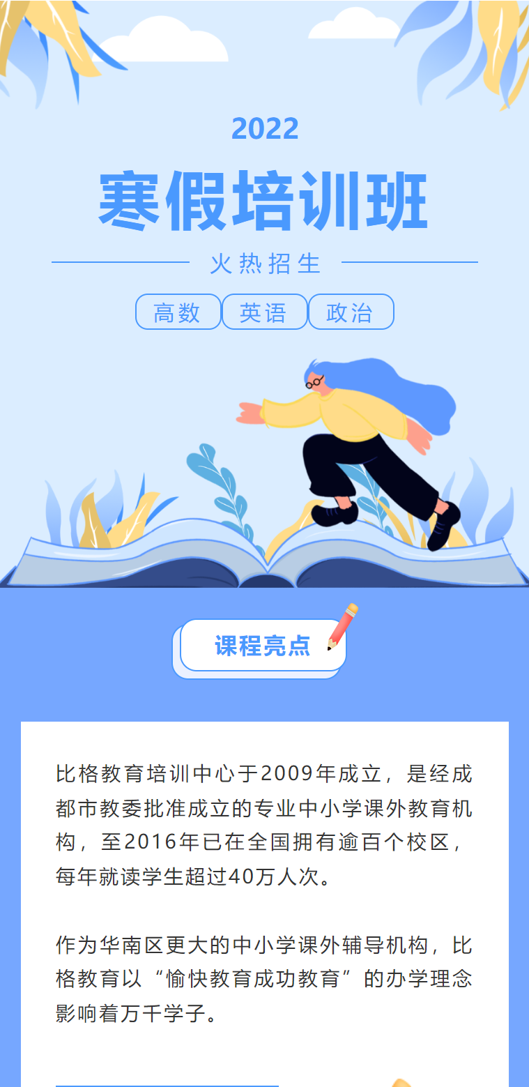 適用場(chǎng)景:適用于培訓(xùn)機(jī)構(gòu)招生、開(kāi)班報(bào)名通知、課程內(nèi)容介紹。