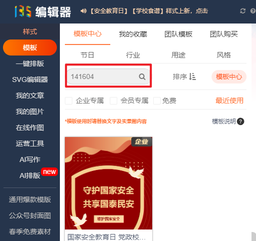 在搜索框中輸入模板ID或關(guān)鍵詞即可