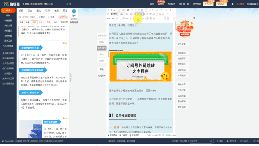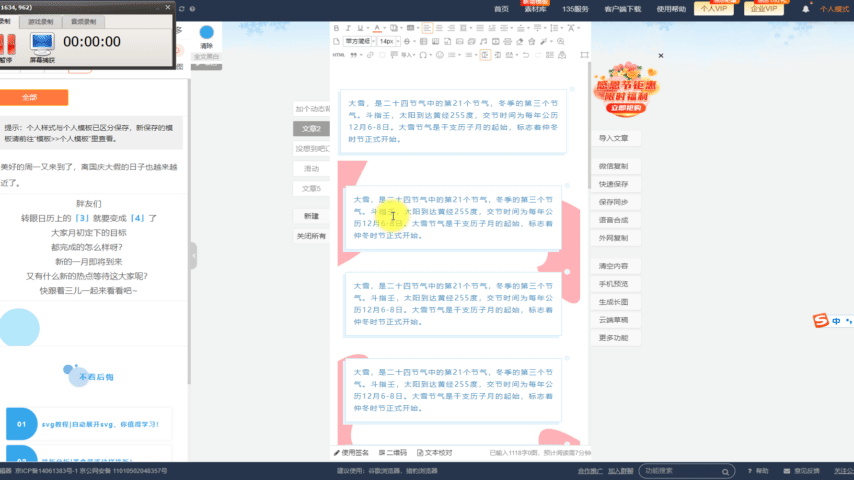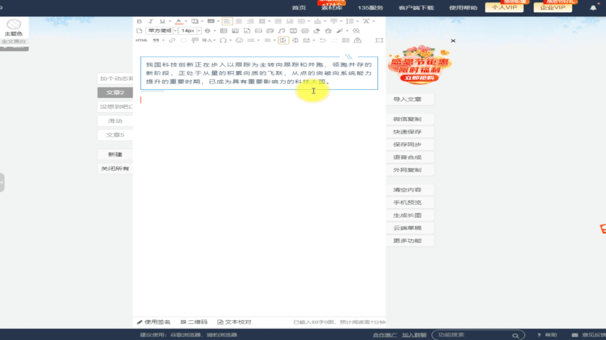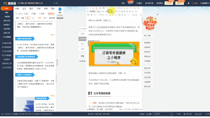 讓公眾號文章脫穎而出:掌握動態(tài)背景設(shè)置,增強(qiáng)視覺沖擊力。從大雪節(jié)氣的動態(tài)示范到一鍵黑白功能,135編輯器帶你探索更多創(chuàng)意排版技巧。立即閱讀,給你的讀者帶來驚喜!