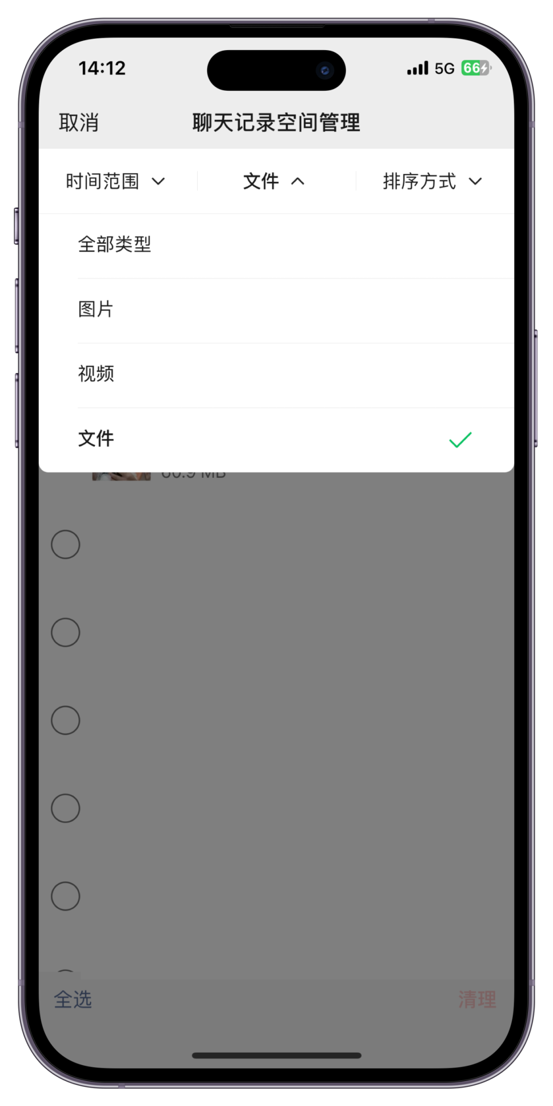 在【我】-【設置】-【通用】-【存儲空間】-【聊天記錄管理】-【文件】選擇需要保存文件的聊天,點擊【...】長按就能保存到手機本地。