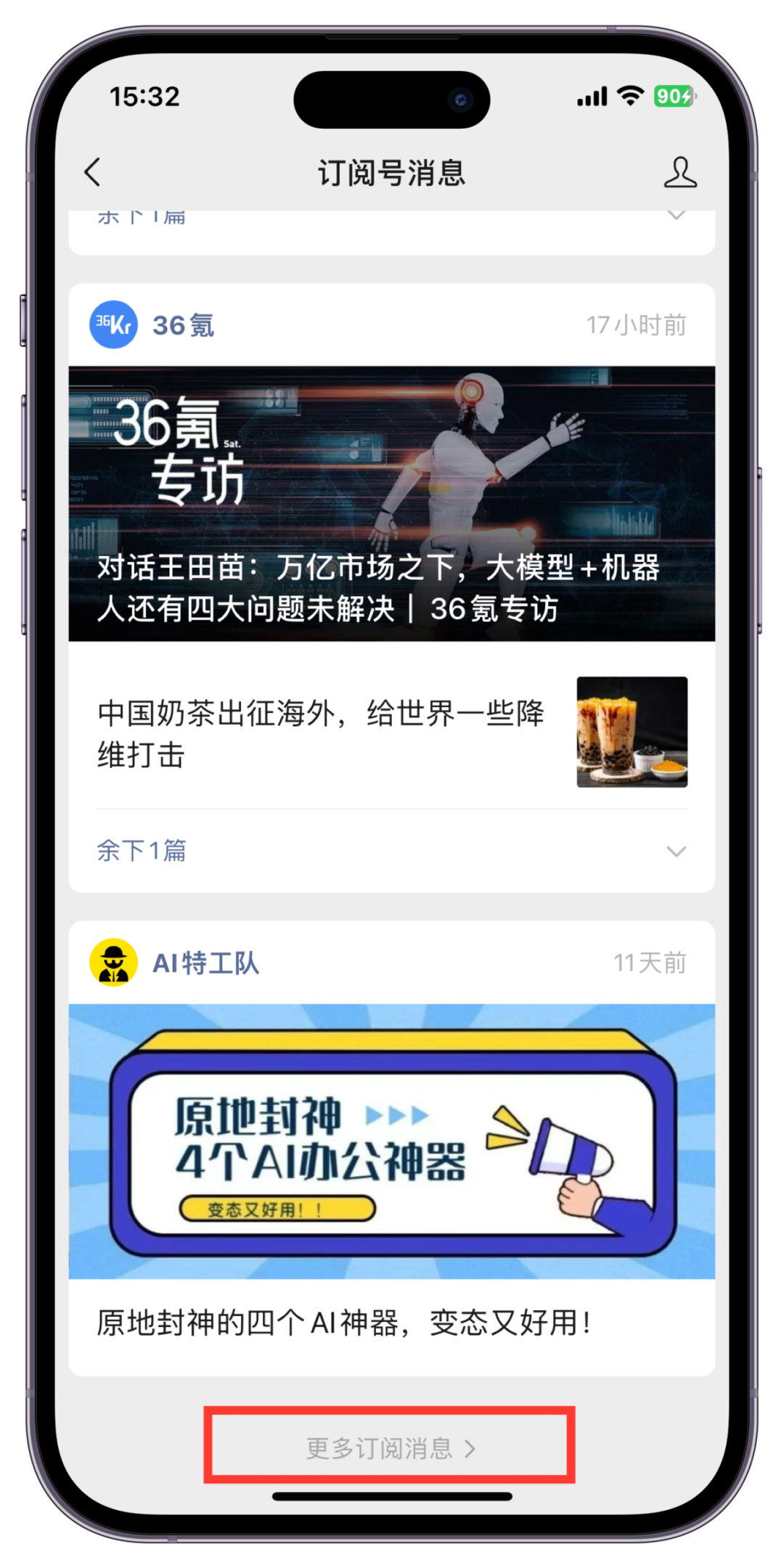 需要點開【更多訂閱號消息】才能看到被折疊的內(nèi)容。