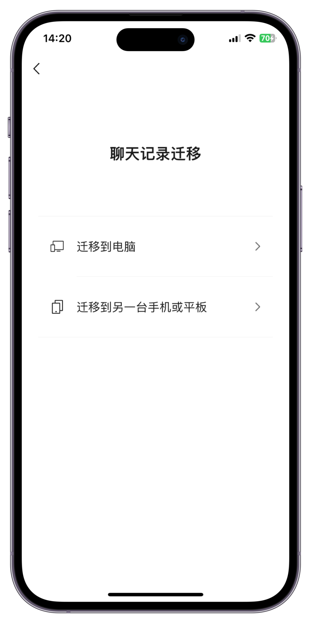 在【我】-【設置】-【通用】-【聊天記錄備份與遷移】-【遷移聊天記錄到另一臺設備】-【遷移部分聊天記錄】-【選擇聊天記錄】-【用另一臺手機登錄同一個微信掃碼】-【聊天記錄恢復】