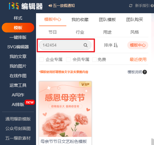 在搜索框中輸入關(guān)鍵詞或模板ID即可