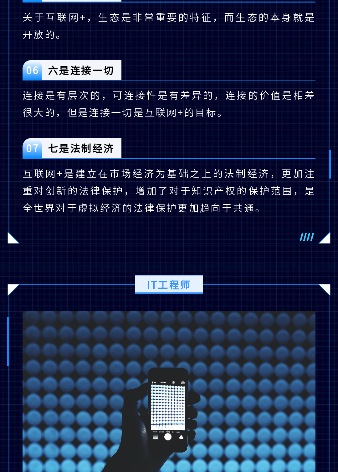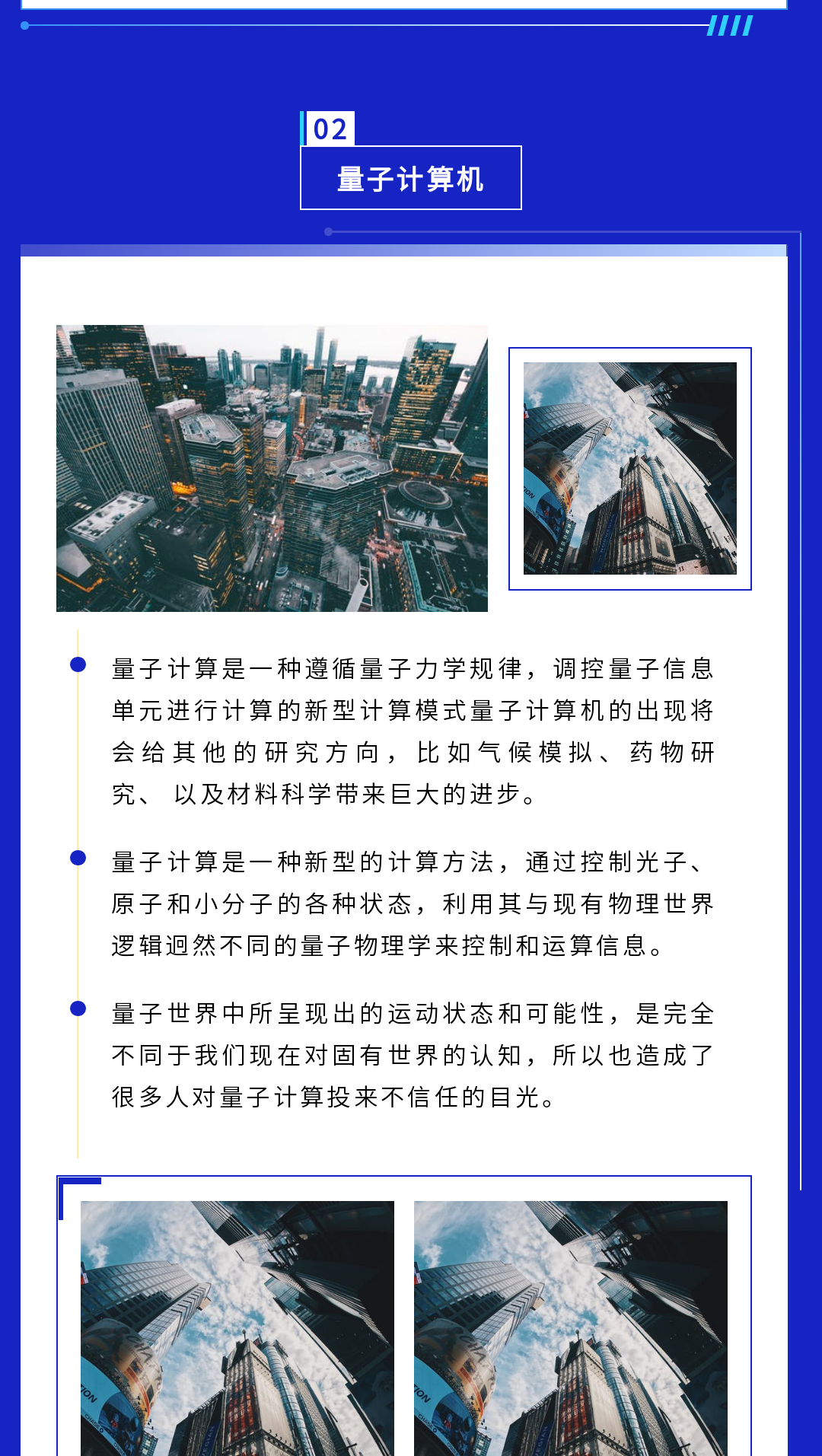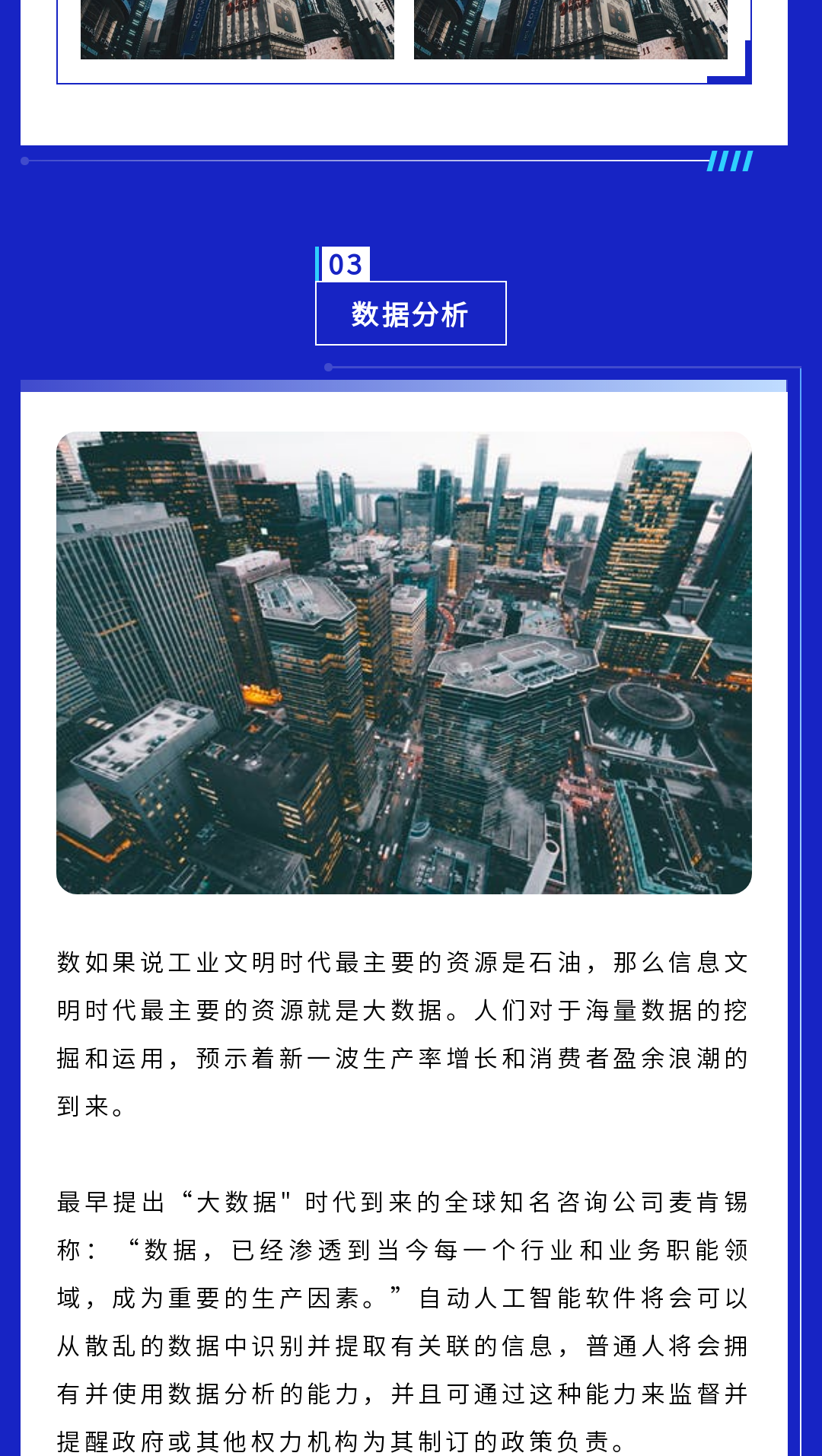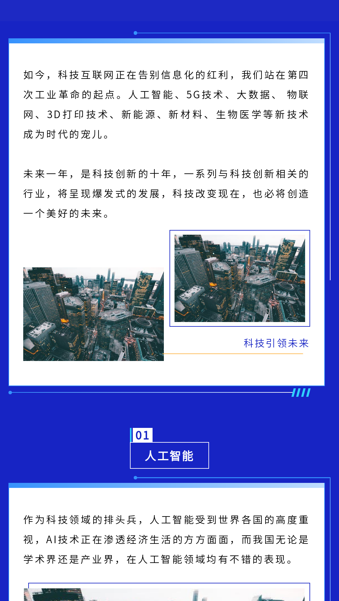 ? 科技行業(yè)的模板一般以深色為主,我們在排版時可以多用白色為底色的邊框,這樣在呈現(xiàn)文字內(nèi)容時會比較清晰。