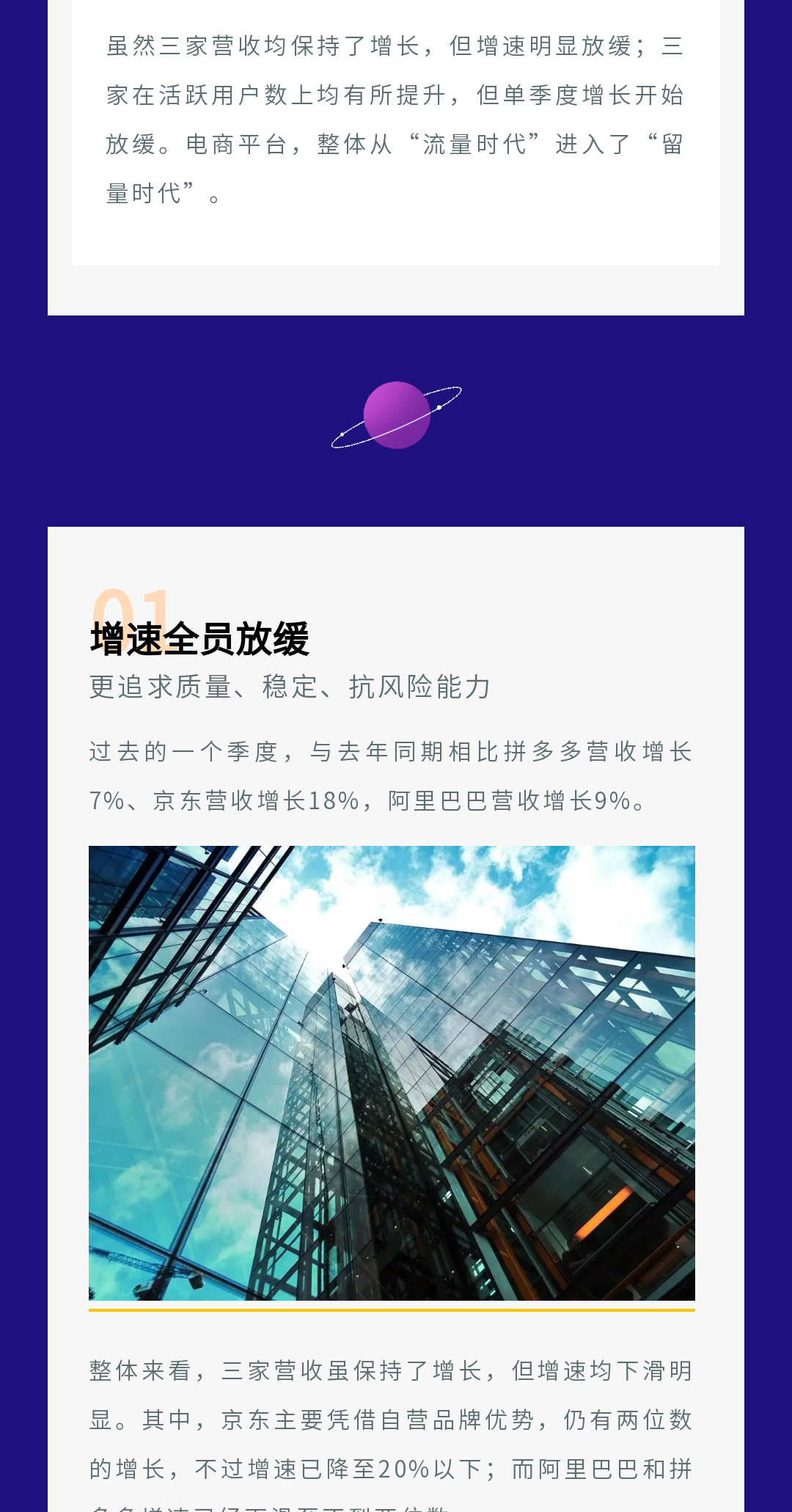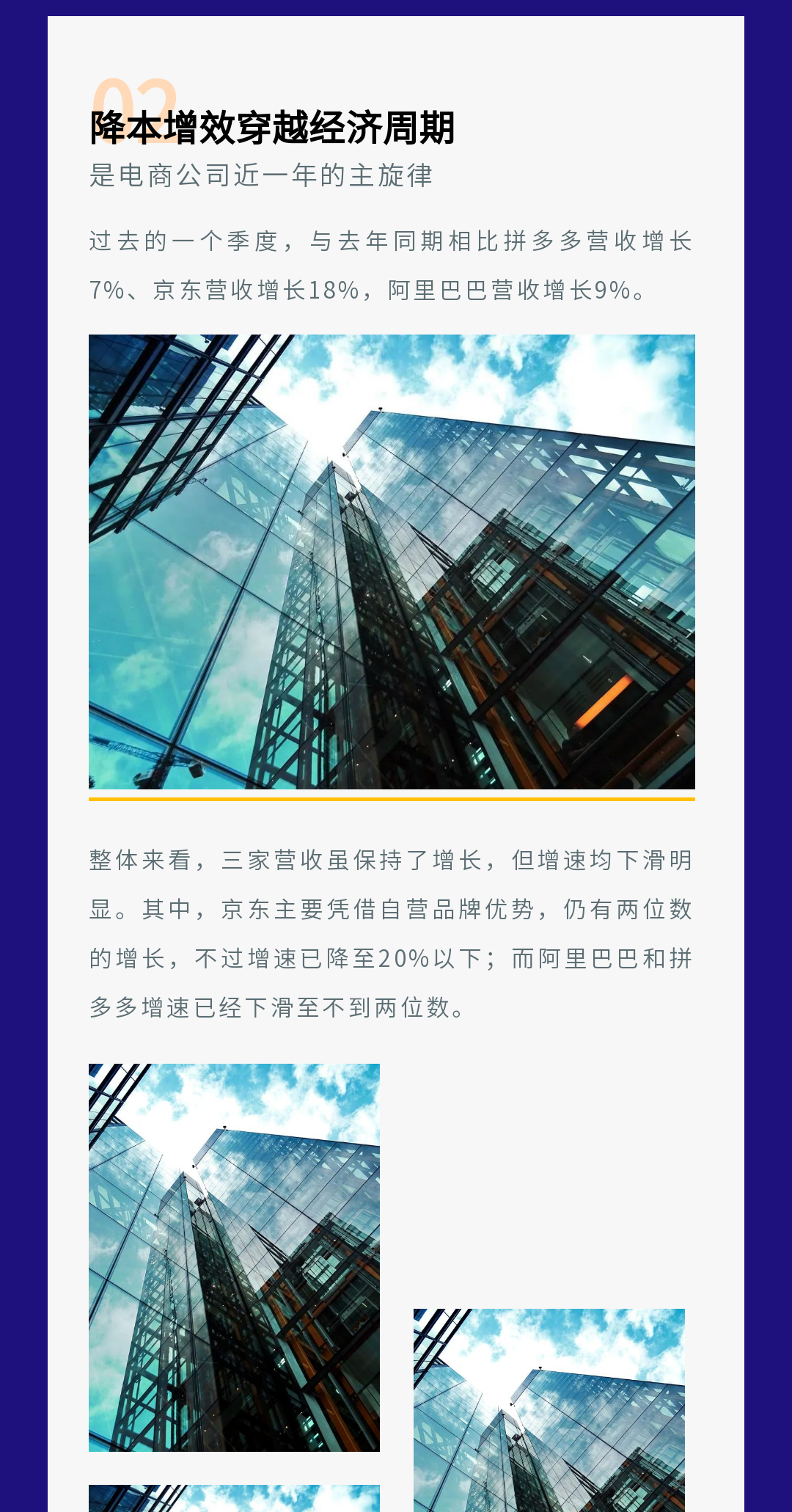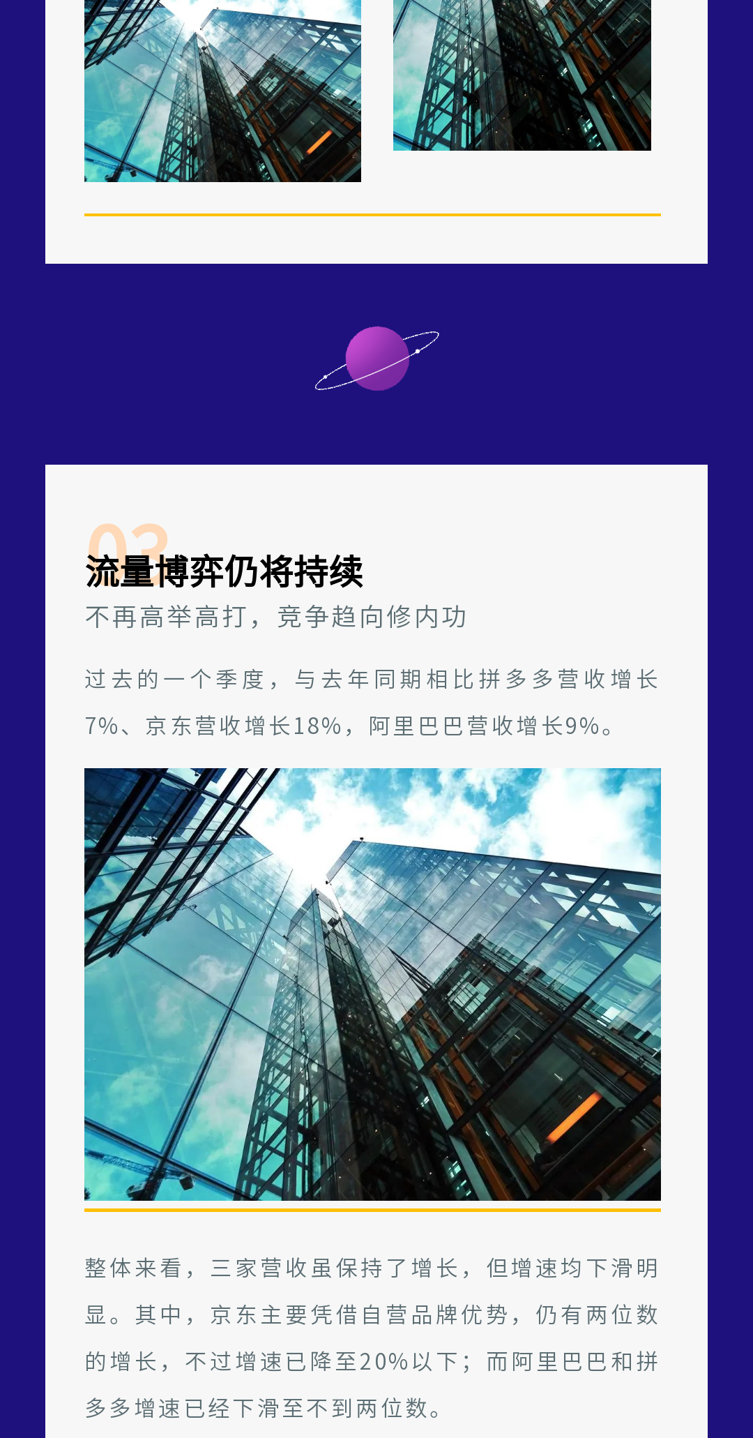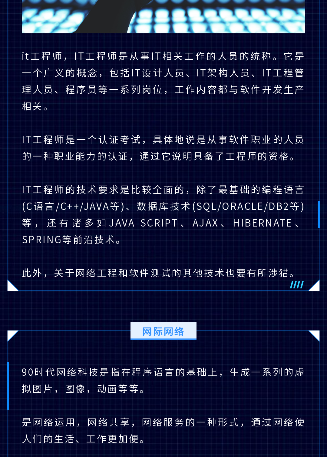 ? 科技行業(yè)的模板一般以深色為主,我們在排版時可以多用白色為底色的邊框,這樣在呈現(xiàn)文字內(nèi)容時會比較清晰。