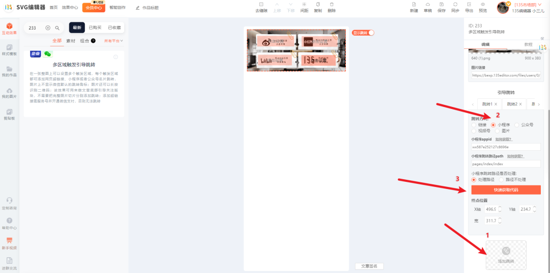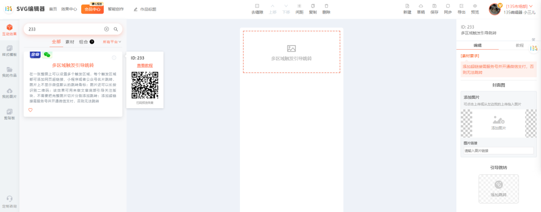 且慢,在SVG編輯器中如果你輸入名為233的組件ID,你就能得到多區(qū)域觸發(fā)引導跳轉這個組件。