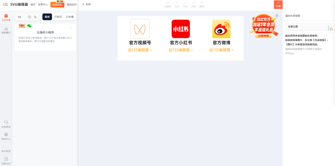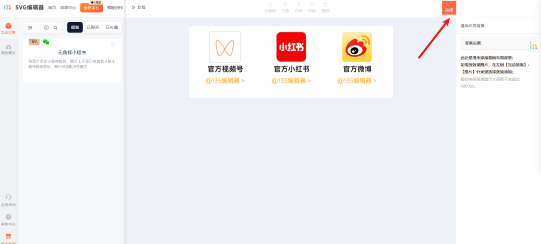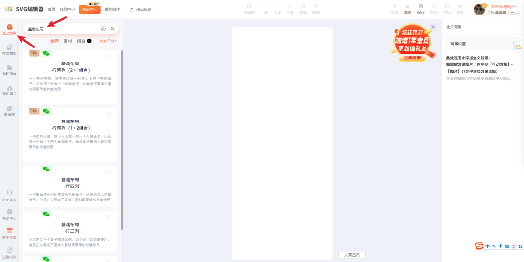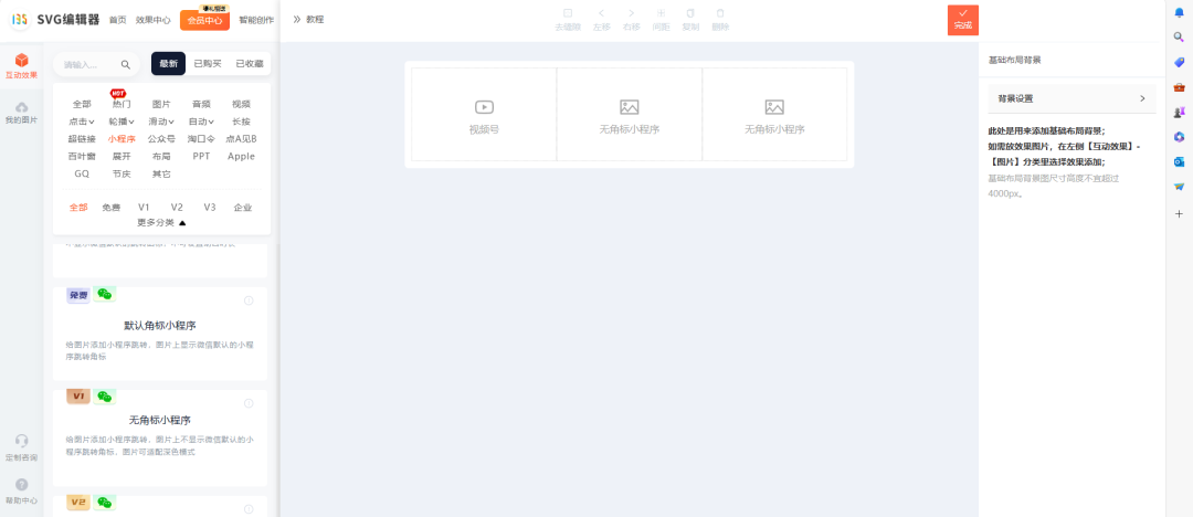 02.點擊進入SVG編輯器頁面,選擇互動效果,在搜索框中搜索:基礎布局