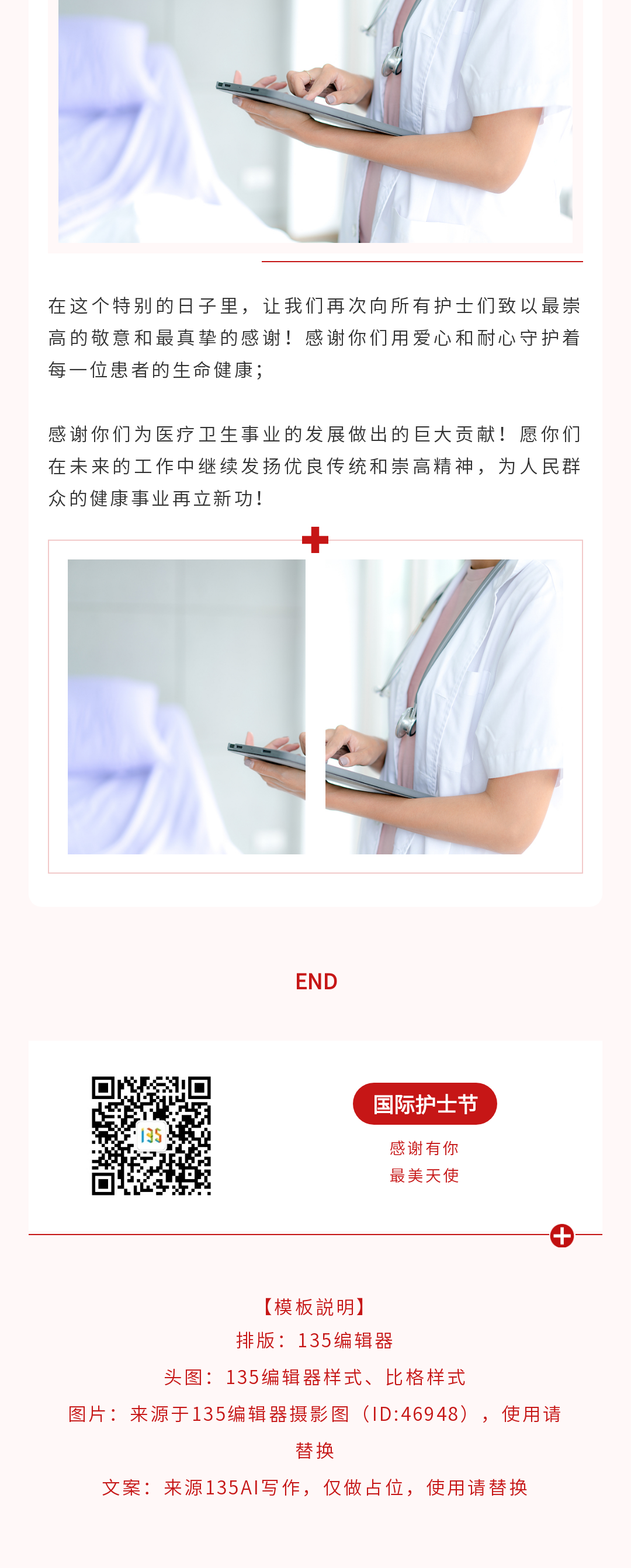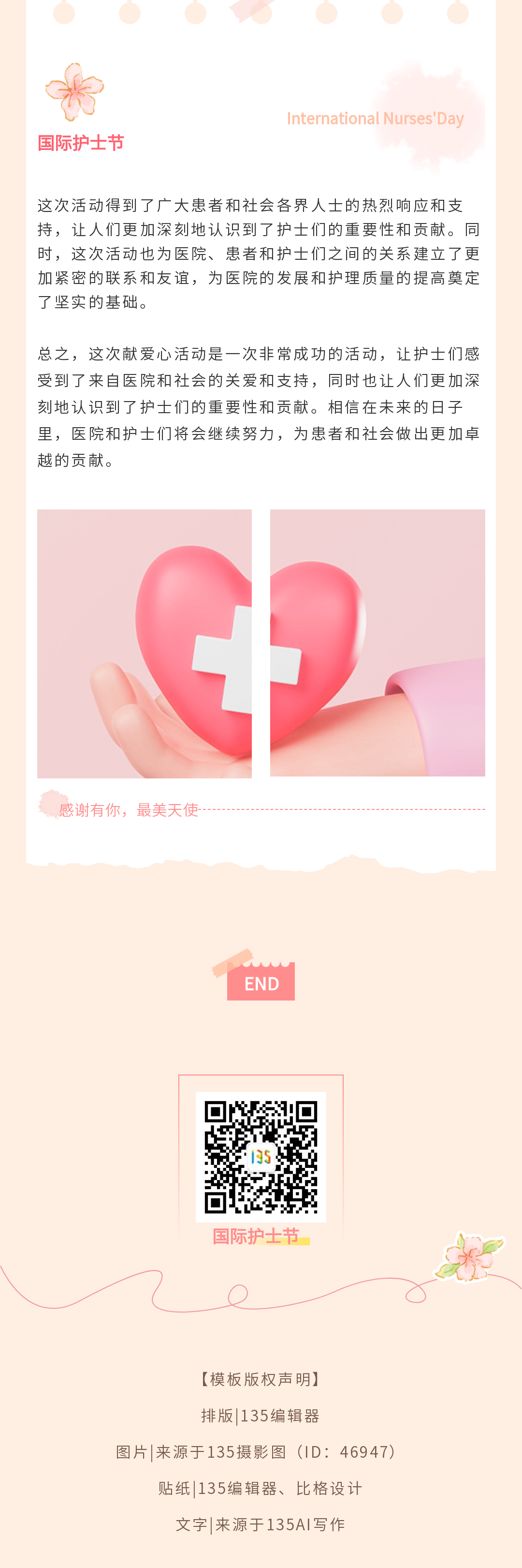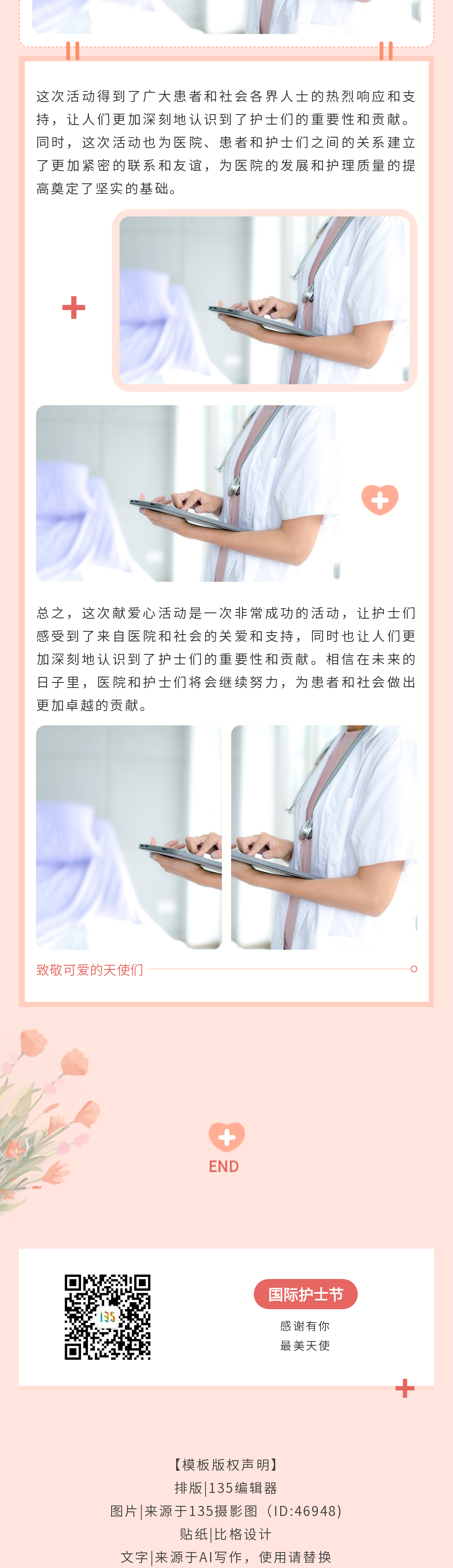 我們?yōu)槟x了一系列精美的海報和公眾號模板,以表達對護士們的感激之情和防災(zāi)減災(zāi)的重要性。通過135編輯器,您可以輕松找到并個性化這些設(shè)計,以適應(yīng)您的社交媒體宣傳或公共活動。