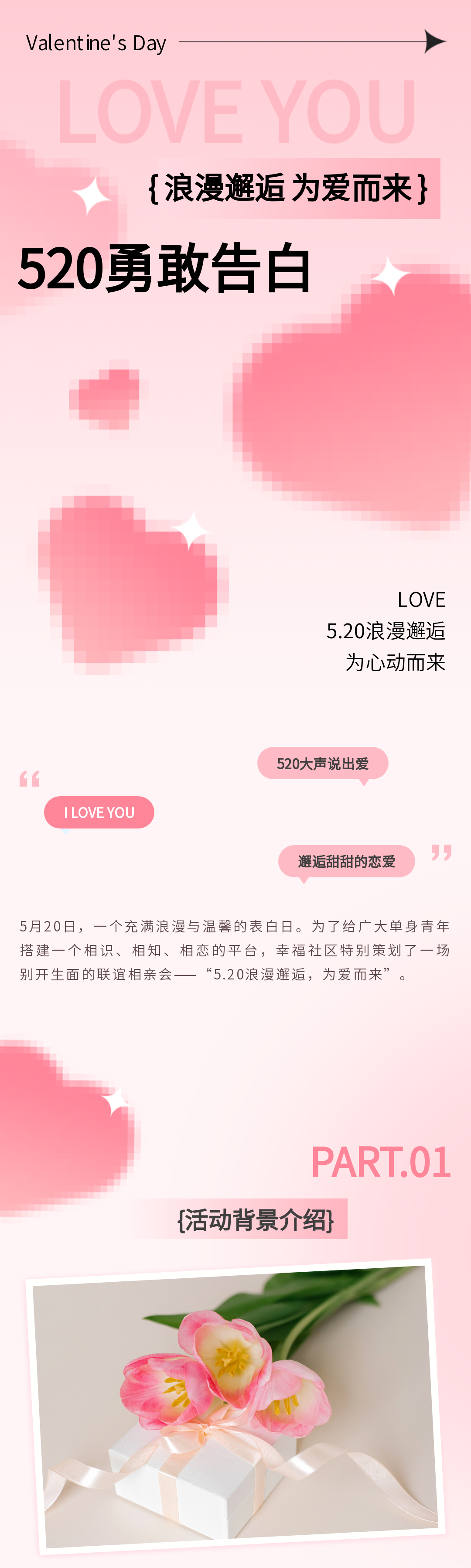 迎接520情人節(jié),為您的愛情增添一份甜蜜!探索我們的精選520情人節(jié)公眾號模板,包括創(chuàng)意告白海報、甜蜜模板和SVG樣式。立即獲取靈感,為您的特別日子增添浪漫氛圍。