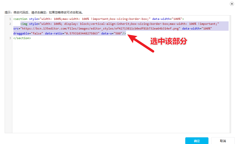 點(diǎn)擊[區(qū)域代碼],選中<img>...</>中的圖片地址