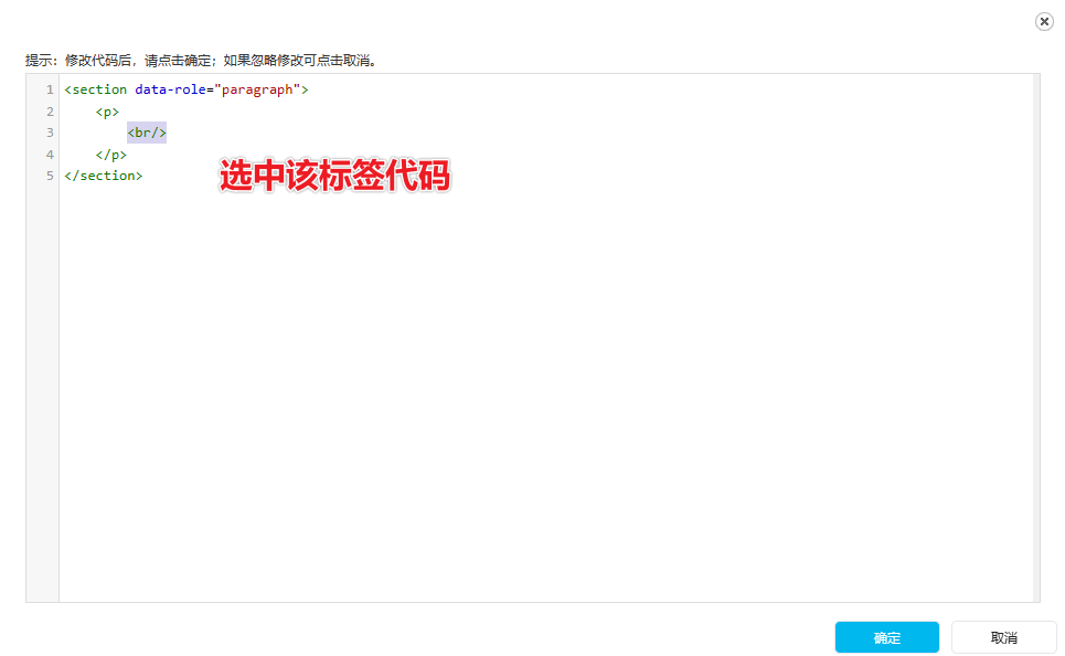 點(diǎn)擊區(qū)域代碼,選中<br/>標(biāo)簽