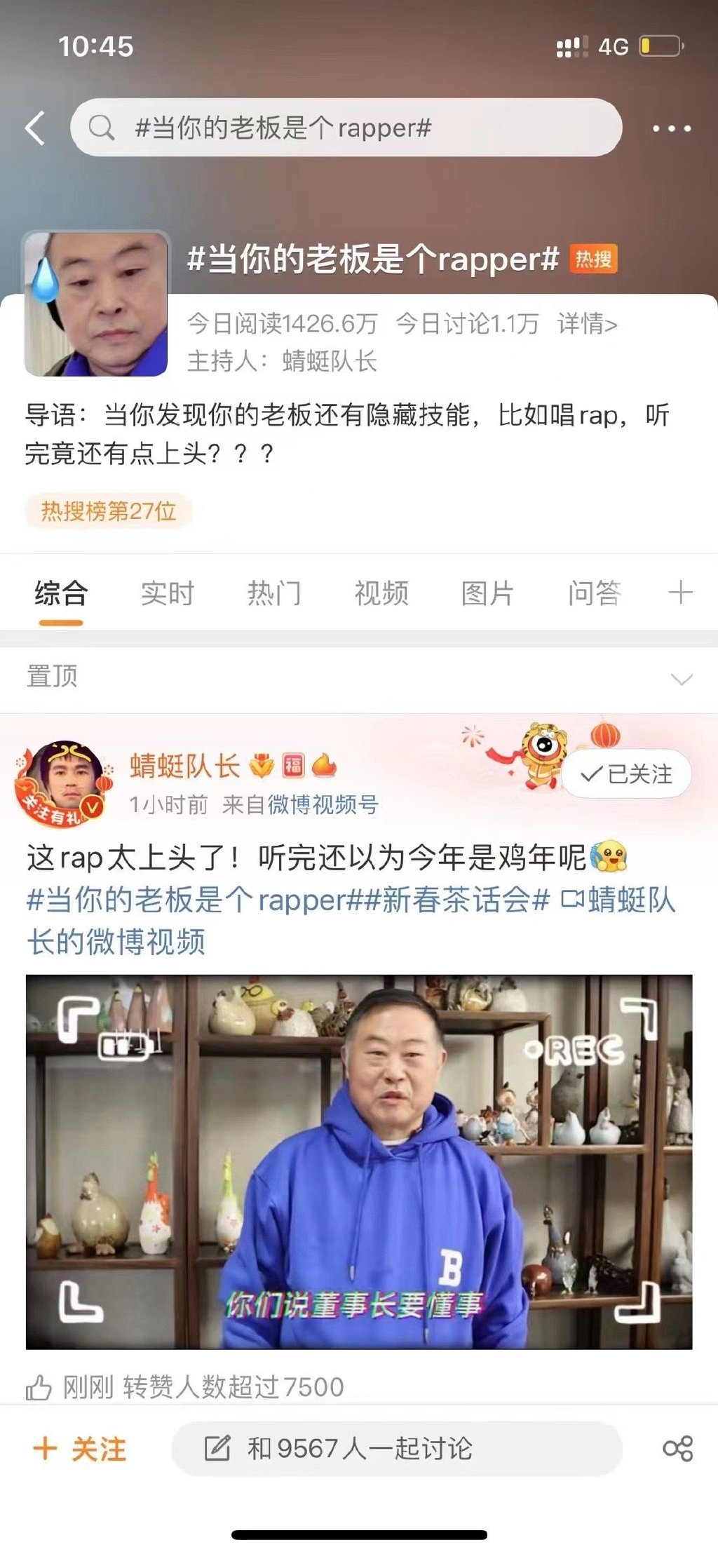 一個(gè)軍人出身的60后老板,可以順應(yīng)潮流,唱跳Rap,一段劉畊宏減肥操說來就來。也能一本正經(jīng)地教你分辨本雞蛋和洋雞蛋之間的細(xì)微差別。