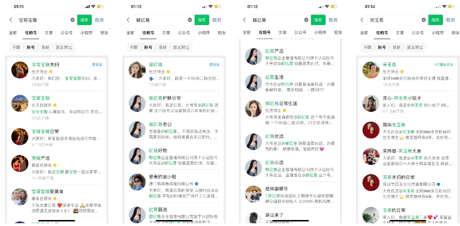 可以看到,無論是【寶哥寶嫂夫婦】,還是【郭億易】、【宋玉?!?,亦或者是【顏君美學(xué)】,都開始布局矩陣號,并且是多個矩陣號。