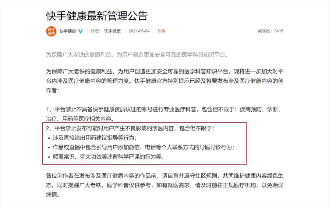 但需要補(bǔ)充一點(diǎn)的是,審核機(jī)制本質(zhì)上是職業(yè)認(rèn)證規(guī)則的進(jìn)階版本。因?yàn)槌宋⒉┩?,抖音、快手、小紅書、B站都禁止非認(rèn)證用戶發(fā)布醫(yī)療科普內(nèi)容,由專業(yè)創(chuàng)作者創(chuàng)作出來(lái)的內(nèi)容,本身就已經(jīng)保證了醫(yī)療科普內(nèi)容的質(zhì)量下限了。所以有專業(yè)審核團(tuán)隊(duì)的平臺(tái)當(dāng)然值得贊譽(yù),其他平臺(tái)不設(shè)置專業(yè)審核團(tuán)隊(duì)的行為也是可以理解的。2)醫(yī)療科普賬號(hào)的商業(yè)化營(yíng)銷界限在哪里?