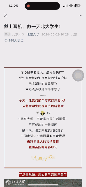 以下文中的北京大學(xué)案例分析,該篇以時(shí)間線為主,通過(guò)音頻的形式,讓讀者從北大學(xué)生的視角去聆聽北大,展現(xiàn)校園風(fēng)采。