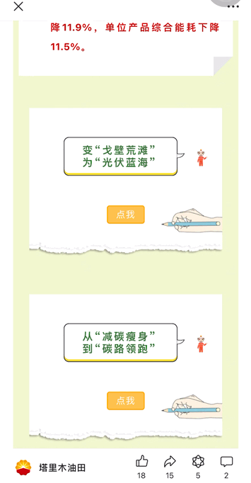 ③ 除此之外,他們的部分公眾號推文中還會使用到SVG效果,比如這篇節(jié)能宣傳周的推文中,由于要展示的文章內容篇幅較長,他們想到利用點擊展開的SVG效果,將長篇內容濃縮在SVG組件中,不僅美化了排版布局,還與讀者形成了互動。