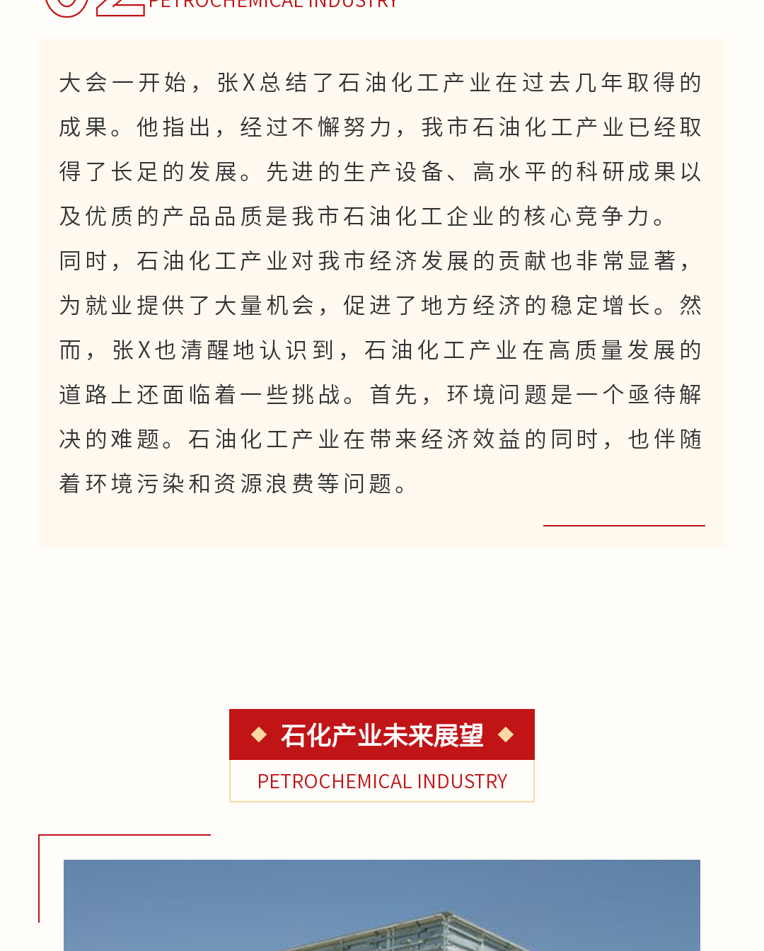 石油行業(yè)的公眾號內容篇幅適中,在字號的選擇上可以采取15號字,字間距設置在1.5px,行間距設置在1.75px。部分石油行業(yè)的公眾號中常常會涉及到企業(yè)發(fā)展宣傳的內容,比如:產業(yè)項目進展、喜報、人物介紹、調研督導等,通常這類文章的結構都是總分總或者總分的形式,所以在排版的過程中最好要劃分好段落,分版塊展示。