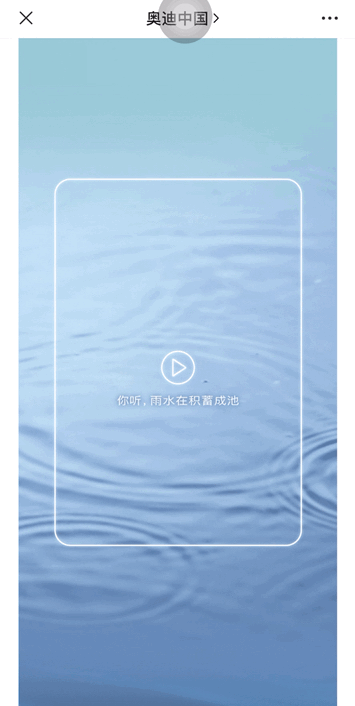這篇推文內(nèi)容是在世界水日當(dāng)天發(fā)布的,向消費者展示了奧迪品牌在可循環(huán)用水方面所做的努力,以雨水、排水系統(tǒng)、廢水的3個方面來說明,利用了視頻號效果來介紹。這篇在排版設(shè)計上很棒的地方就在于,他們將動態(tài)視頻號效果作為主要的內(nèi)容展示形式,在每個動態(tài)視頻號的銜接部分做得很自然,讓整篇推文看上去高級感十足。