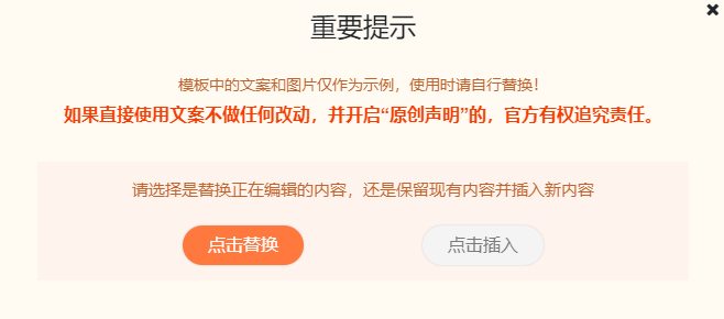 選擇自己需要添加的模板,點(diǎn)擊模板會彈出「提示」,這個時候我們要選擇「點(diǎn)擊插入」