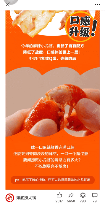 餐飲美食行業(yè)的推文配圖主要是以展示美食產(chǎn)品為主,包括美食主體和局部、食材部分,整體質(zhì)量高,且會(huì)采用靜態(tài)圖和動(dòng)態(tài)圖結(jié)合進(jìn)行展示,通過(guò)動(dòng)靜結(jié)合的圖片排版方式,可以給用戶一種視覺(jué)沖擊力,吸引用戶下單購(gòu)買。