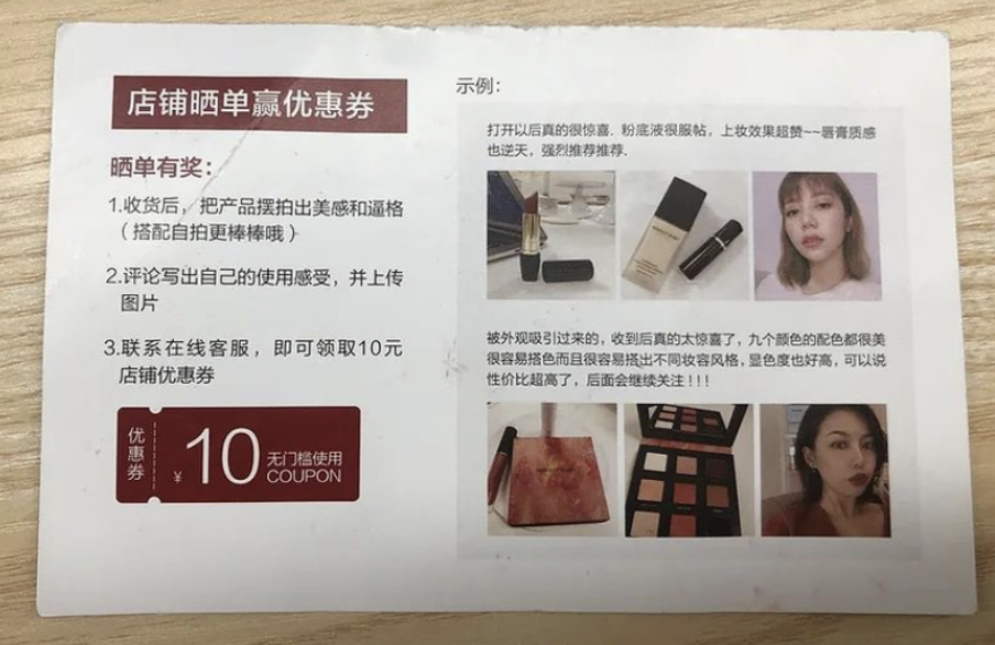 實(shí)物類(lèi)的轉(zhuǎn)化效果更好,適合絕大多數(shù)電商品牌,但前提是預(yù)算夠充足,不僅有禮品的成本,還有物流的成本。實(shí)物的選擇有很多,例如產(chǎn)品相關(guān)的產(chǎn)品、抽獎(jiǎng)/抽盲盒等,要盡可能貼合用戶(hù)人群的喜好,既能做到拉新轉(zhuǎn)化,吸引的用戶(hù)也更加精準(zhǔn),利于后期對(duì)用戶(hù)進(jìn)行復(fù)購(gòu)引導(dǎo)。例如賣(mài)眼鏡的商家,可以選擇贈(zèng)送眼鏡護(hù)理液或是眼藥水;賣(mài)衣帽服飾的可以選擇贈(zèng)送襪子,絕大部分用戶(hù)都樂(lè)于接受。 虛擬類(lèi)的包裹卡成本相對(duì)較低,但缺乏一定的吸引力,所以在包裹卡的文案、設(shè)計(jì)上有著更高的要求。同樣適合大多數(shù)電商品牌,也適合一些新銳品牌做增長(zhǎng)。通常的形式有滿(mǎn)減券、折扣券、優(yōu)惠券等,需要配合一些營(yíng)銷(xiāo)的玩法提升用戶(hù)的參與度,但切記不要把玩法設(shè)計(jì)的過(guò)于復(fù)雜。 服務(wù)類(lèi)的包裹卡通常以售后服務(wù)、增值服務(wù)、會(huì)員體驗(yàn)名額等方式進(jìn)行誘導(dǎo),適合服務(wù)、家裝類(lèi)型的電商。比如電器、柜子等需要添加客服發(fā)送安裝視頻;美妝類(lèi)產(chǎn)品可以提供護(hù)膚建議服務(wù),這類(lèi)引流方式比較自然,用戶(hù)粘性也較強(qiáng),缺點(diǎn)是需要消耗人力成本和服務(wù)周期成本。 當(dāng)然,在實(shí)際設(shè)計(jì)中,可以考慮多種形式的組合,效果會(huì)更好。前提是成本和效果要算得明白,不要賠本賺吆喝。誘餌設(shè)計(jì)完之后,就要考慮包裹卡的具體樣式了,其中要做好三個(gè)關(guān)鍵點(diǎn):大小尺寸:通常以小尺寸卡片為主,尺寸過(guò)大對(duì)內(nèi)容有更高的要求。色調(diào):暖色系為主,最好要符合品牌的調(diào)性,不要選擇太鮮艷刺目的顏色。材質(zhì):通常軟紙居多,硬紙和塑料卡體驗(yàn)更好,但成本偏高。形狀:通常以卡片型居多,還有如長(zhǎng)條形、書(shū)簽型、A4紙型等,結(jié)合設(shè)計(jì)可做調(diào)整。例如上面這兩張包裹卡的對(duì)比,硬紙卡片會(huì)使整體感覺(jué)更高級(jí),也更受用戶(hù)喜歡。圖片素材:考慮整體設(shè)計(jì)感,最好配以自家產(chǎn)品,加深用戶(hù)的印象。文案:利益點(diǎn)要足夠精煉,短時(shí)間內(nèi)就能抓住用戶(hù)注意力,禮品獲取步驟更可能簡(jiǎn)單清晰。排版:重點(diǎn)突出標(biāo)題和賣(mài)點(diǎn),排版主次:引流誘餌產(chǎn)品>文案包裝>配色>品牌元素。二維碼:一定要用活碼,不會(huì)過(guò)期,也便于數(shù)據(jù)的監(jiān)測(cè)。例如這兩張包裹卡,顯然左邊的文字更少,信息更聚焦,右邊這張可能用戶(hù)還沒(méi)看完就丟掉了,關(guān)鍵信息沒(méi)有做到突出。再看每日黑巧的包裹卡,轉(zhuǎn)換率高達(dá)30%以上。重點(diǎn)突出了“福利”,整體排版清晰簡(jiǎn)潔,利益點(diǎn)又多又明確,讓用戶(hù)自然很想進(jìn)入其私域。掃碼回復(fù)文案:提前設(shè)置好自動(dòng)回復(fù)話(huà)術(shù),要有足夠的儀式感和價(jià)值感,再設(shè)置進(jìn)一步的誘導(dǎo),給予用戶(hù)進(jìn)入私域社群的理由。