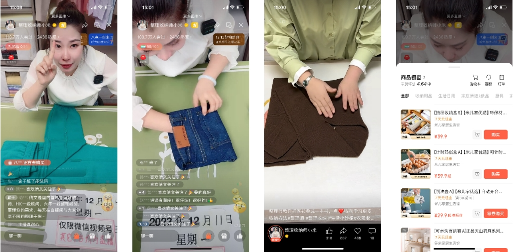 從帶貨能力來(lái)看,雖然這類(lèi)直播間的產(chǎn)品單價(jià)比較低,但銷(xiāo)量頗為驚人,這從相關(guān)賬號(hào)的櫥窗已售數(shù)據(jù)也可以看出。以賬號(hào)【整理收納師小米】和【整理收納師艾莉】為例,截止到12月12日,視頻號(hào)櫥窗顯示的銷(xiāo)量分別為63.1萬(wàn)件和62.9萬(wàn)件。為什么整理收納類(lèi)直播間能夠在視頻號(hào)中獲得如此熱度?目前整理收納直播間在視頻號(hào)的生態(tài)情況究竟如何?我們經(jīng)過(guò)對(duì)一些典型案例的觀察拆解,對(duì)這類(lèi)直播間的打法和策略進(jìn)行了歸納總結(jié)。同時(shí),通過(guò)對(duì)整理收納師這一新興職業(yè)市場(chǎng)需求的調(diào)研,以及爆火背后的邏輯分析,得出了一些關(guān)鍵結(jié)論和預(yù)判,或許能給大家了解整理收納直播間在視頻號(hào)生態(tài)的真實(shí)情況,提供些許幫助。以下是本文的展開(kāi)結(jié)構(gòu):2、整理收納內(nèi)容爆火背后的價(jià)值和共性;
