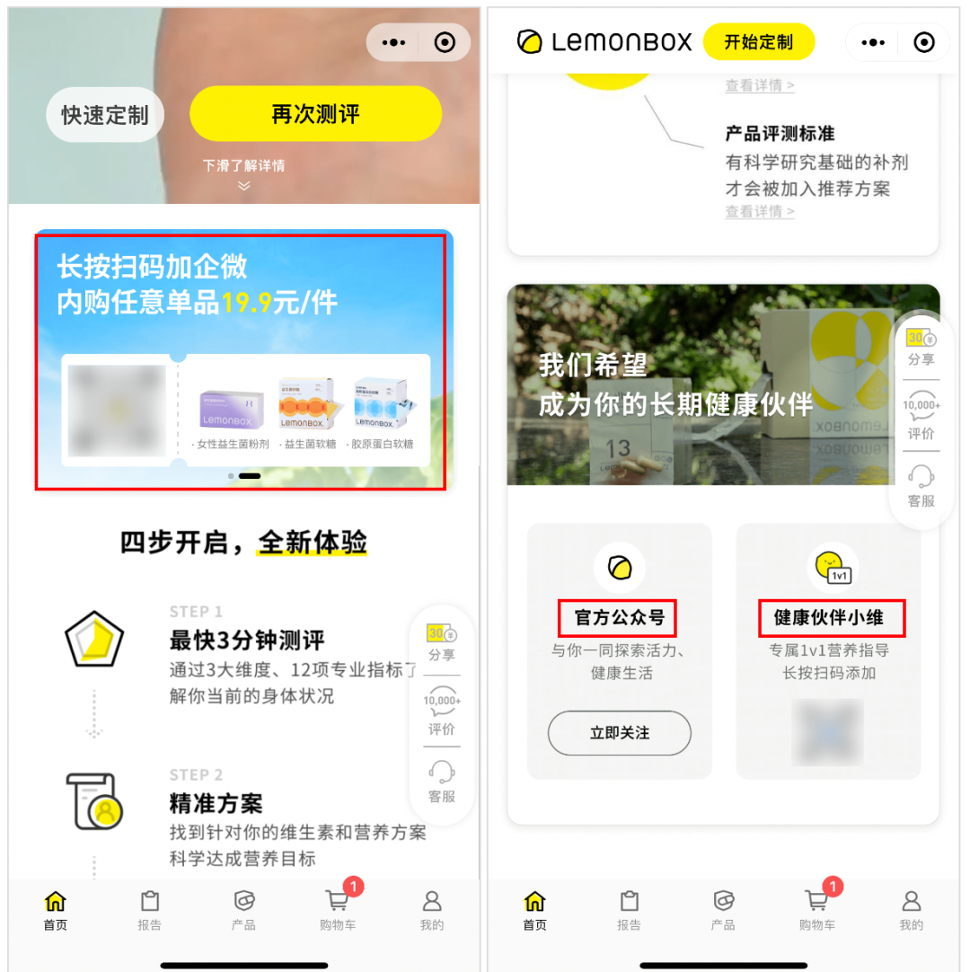 靠著搶占「定制營養(yǎng)包」細分市場的單品策略,LemonBox 成立 5 年就營收破億,增長迅速。根據(jù)創(chuàng)始團隊透露,定制營養(yǎng)包的客單價一般在 500 元,季度復(fù)購率在 30% ,高于同行業(yè)平均水平。為什么在短時間內(nèi)有大批忠實用戶為其買單?運營社發(fā)現(xiàn), LemonBox 在產(chǎn)品打造上,極具互聯(lián)網(wǎng)思維,不僅利用「大數(shù)據(jù)」做定制化產(chǎn)品,同時還具備「用戶思維」,將細節(jié)打磨到極致。LemonBox 能做到短時間內(nèi)營收破億、用戶復(fù)購率高的成績,絕不是因為找到了一個「通用」的產(chǎn)品模板,而是找準了目標人群后,進行「個性化」推薦的結(jié)果。在向用戶提供營養(yǎng)產(chǎn)品之前,LemonBox 會讓用戶在小程序上做一份「FFQ營養(yǎng)測評」,里面會問到“基本信息、營養(yǎng)目標、生活習(xí)慣、身體狀況”這 4 個方面的問題。填完以后,會自動生成一份「個人健康營養(yǎng)報告」,并基于報告數(shù)據(jù),向用戶推薦個性化營養(yǎng)方案。從而實現(xiàn)了 LemonBox “定制營養(yǎng)包”的效果。相較于“傳統(tǒng)”營養(yǎng)包,LemonBox 更加注重量身定制,確保用戶只補充所需,不多吃也不少吃。比如說,小 A 用戶的健康測評綜合 83 分,營養(yǎng)目標包括睡眠、腦力和身材,LemonBox 會基于她的生活習(xí)慣和營養(yǎng)目標,向小 A 用戶推薦 3- 6 種維生素補劑。例如,「GABA」來改善失眠狀況,「Omega-3」來降低血脂、改善記憶;「左旋肉堿」來促進脂肪燃燒,達成體重管理的需求。不僅如此,LemonBox 還考慮到不同人群對于「營養(yǎng)包」品類的接受程度,給出了「基礎(chǔ)方案」和「進階方案」。針對新用戶或者不曾接觸過維生素的用戶,LemonBox 建議從 3 種維生素開始服用,而進階的方案,用戶可以根據(jù)自己的需求,添加其他維生素補劑。在購買劑量上,有 1 個月體驗裝和 3 個月效果裝可供選擇。這份健康報告可以一直保存在用戶的個人中心里,服用了一段時間后(一般 3 個月為 1 個周期),用戶可以再次做測評,評估自己的綜合健康水平是否有提升。針對于當前的健康水平和目標,LemonBox 也會相對應(yīng)給到下一個階段的營養(yǎng)包推薦。通過「問卷填寫-生成定制營養(yǎng)包方案- 再次評估- 產(chǎn)品周期復(fù)購」這一流程,既做到了千人千面定制推薦,又做到周期產(chǎn)品復(fù)購,加強了用戶的粘性和忠誠度。為了提高用戶體驗,LemonBox 把各個細節(jié)做到極致,非常具有用戶思維。相較于傳統(tǒng)的營養(yǎng)包產(chǎn)品,要從不同的包裝中拿取,LemonBox 將用戶訂購的維生素,按每日所需,分裝進一個袋子里。用戶只需要每天從盒子里抽取一包即可。在包裝上會標明 “ 01、02 、03”等數(shù)字,提示用戶這是第幾天服用維生素。有不少用戶在評論區(qū)里評論,這種做法,確實能夠堅持服用,攜帶也方便。這種定制化的體驗,還體現(xiàn)在產(chǎn)品的包裝上。運營社發(fā)現(xiàn),LemonBox 經(jīng)常有一些令人“哇塞”的小細節(jié)。比方說,用戶打開 LemonBox 明黃色的盒子,就能看到有“Hi + 用戶名字”的字眼。包裝袋上,不僅有用戶的專屬昵稱,還寫著有內(nèi)含的維生素種類及數(shù)量。如果你想要送禮,LemonBox 也可以將朋友、親人的名字印在包裝袋上,給人一種妥妥的儀式感,有私人定制的感覺。LemonBox 也主打一個“科普式”營銷,通過專業(yè)的「內(nèi)容」培養(yǎng)用戶堅持服用營養(yǎng)包的心智。用戶收到貨后里面有個小冊子,在上面都能找到推薦維生素的信息,包括功效、健康科學(xué)評級、營養(yǎng)成分、生產(chǎn)地及安全認證等等。向用戶科普維生素知識的同時,也增強信息的透明化,此舉會加強用戶對品牌的信任。與此同時,在每日一袋的包裝上面,還有一則「GOOD TO KNOW」的健康小知識,每天不重樣。所以,你也可以理解為,LemonBox 在做一個定制營養(yǎng)包相關(guān)的“內(nèi)容產(chǎn)品”。差異化的大單品策略讓 LemonBox 迅速打開國內(nèi)市場,而 DTC 的模式,則是 LemonBox 營收過億的第二個重要的策略。其通過自主渠道和經(jīng)營管理,實現(xiàn)了品牌曝光和銷售轉(zhuǎn)化。“我們需要做一個創(chuàng)新的東西,來實現(xiàn)我們占領(lǐng)市場的目標。DTC 顯然是一個很好的方向。在國內(nèi),我們認為微信生態(tài)更趨于 DTC 的模式?!?/span>
