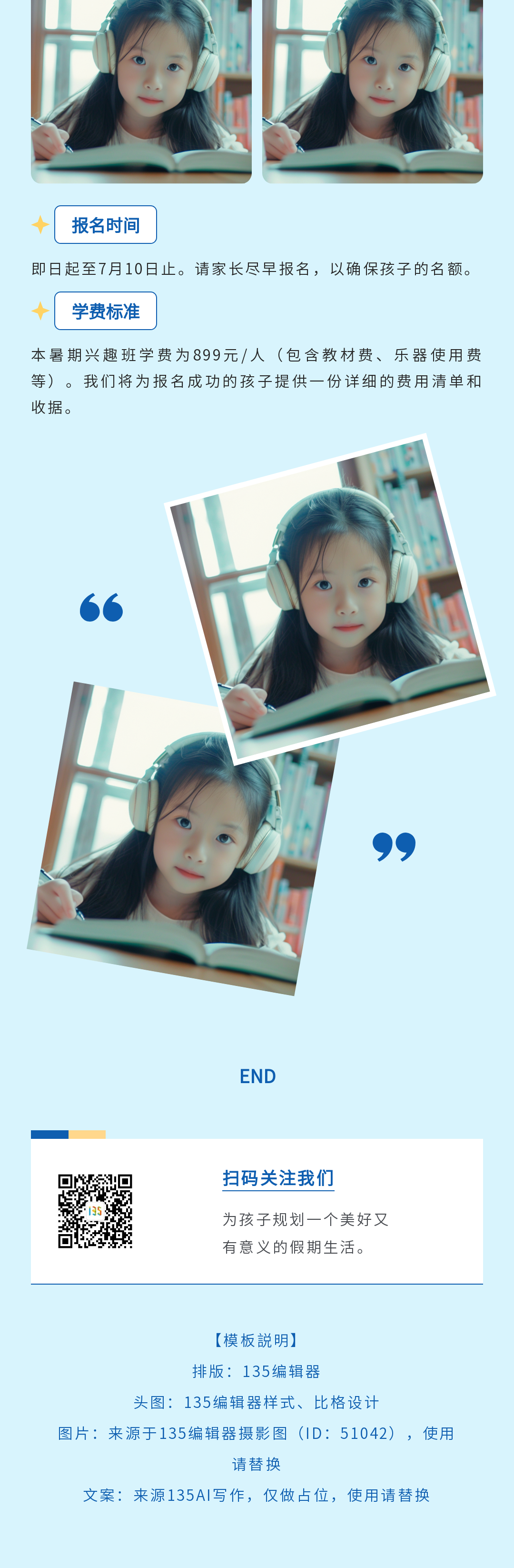 暑假公眾號模板推薦:涵蓋安全、旅游與興趣班招生