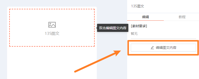 ② 點(diǎn)擊編輯器右側(cè)的【編輯圖文內(nèi)容】按鈕,或者雙擊中間編輯區(qū)的卡片,調(diào)出135編輯器圖文編輯界面