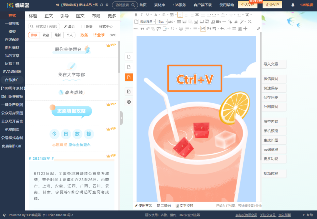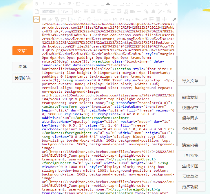 ② 打開(kāi)135編輯器,在編輯區(qū)域Ctrl+V粘貼剛剛復(fù)制的代碼,代碼就會(huì)自動(dòng)生成SVG效果