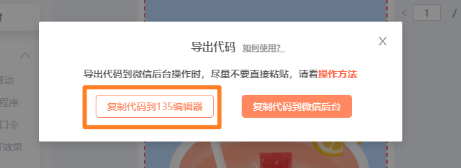 ① 在SVG編輯器中制作好SVG互動(dòng)效果后,點(diǎn)擊右上角的【導(dǎo)出-復(fù)制代碼到135編輯器】按鈕,復(fù)制該效果的代碼
