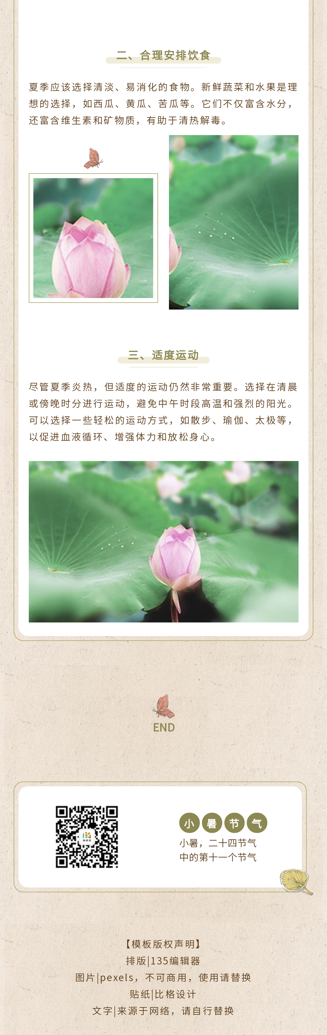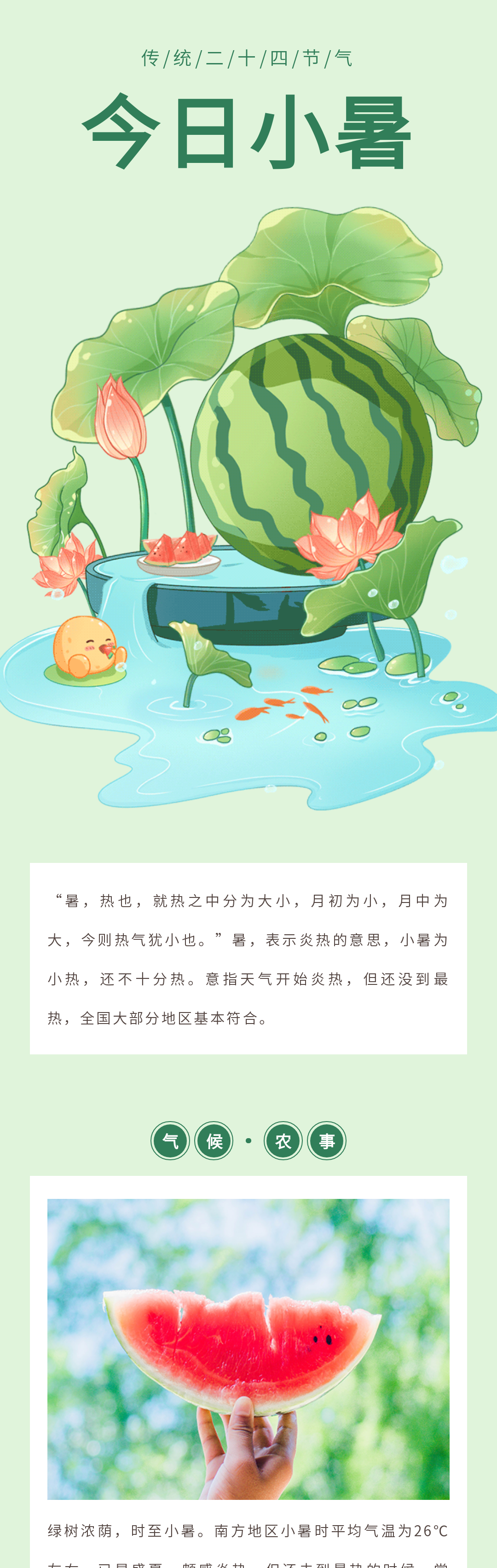 迎接小暑,為您的公眾號帶來一抹清涼。探索我們精選的小暑節(jié)氣模板,讓您的讀者在炎熱的夏日感受到一絲涼意。從傳統(tǒng)海報到現(xiàn)代清爽樣式,我們提供多樣化設(shè)計,易于搜索和應(yīng)用。立即訪問,為您的內(nèi)容增添季節(jié)感,讓小暑成為您公眾號的亮點。